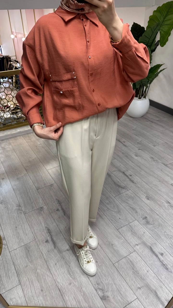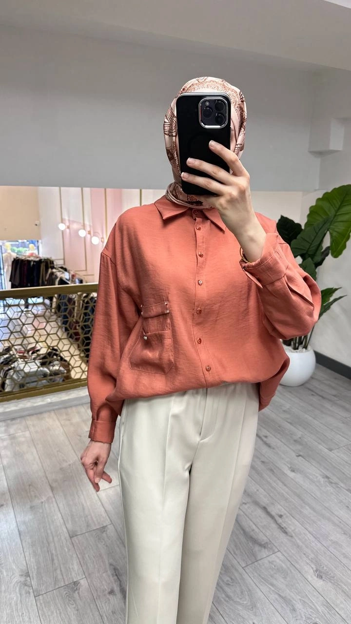 Ceremony Kiremit Cebi Taş Detaylı Gömlek