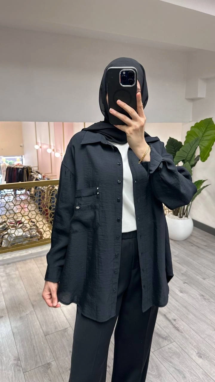 Ceremony 26Y196 Siyah Cebi Taş Detaylı Gömlek