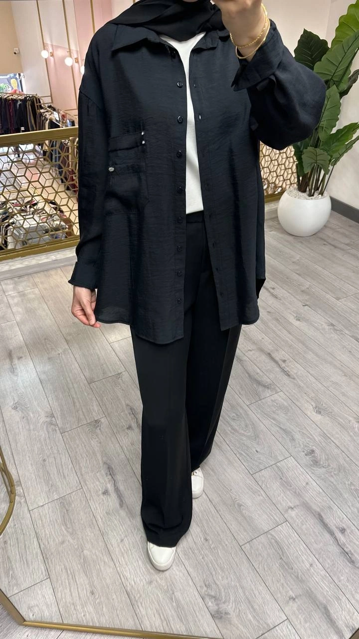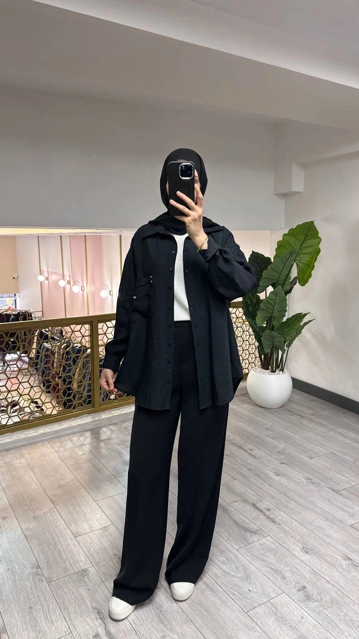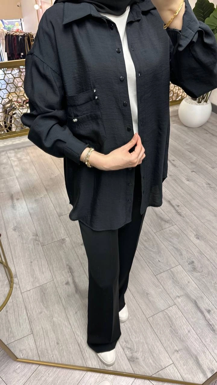 Ceremony Siyah Cebi Taş Detaylı Gömlek