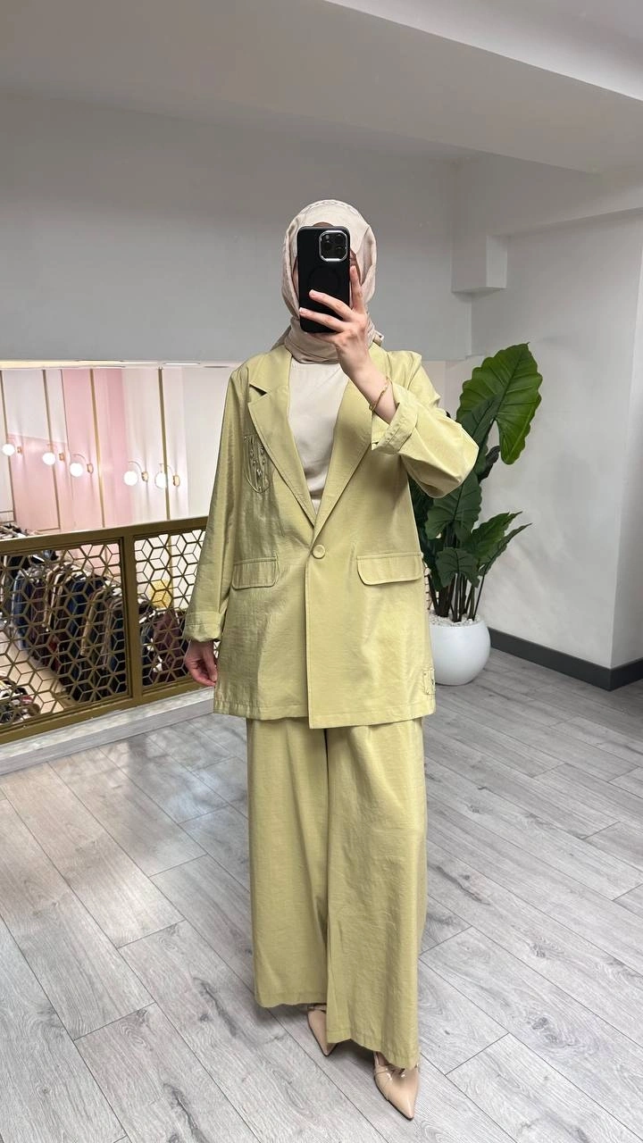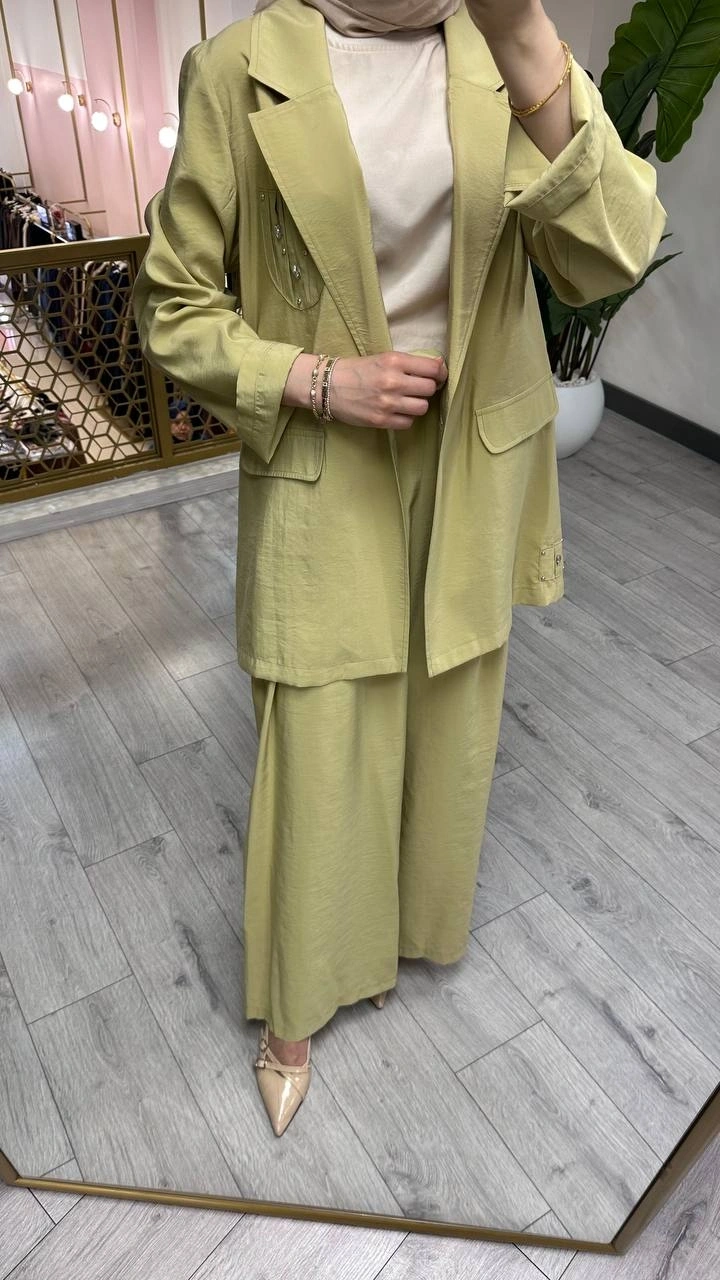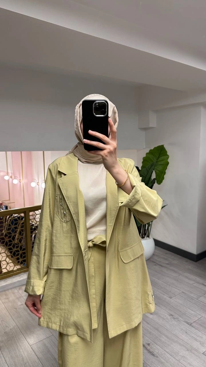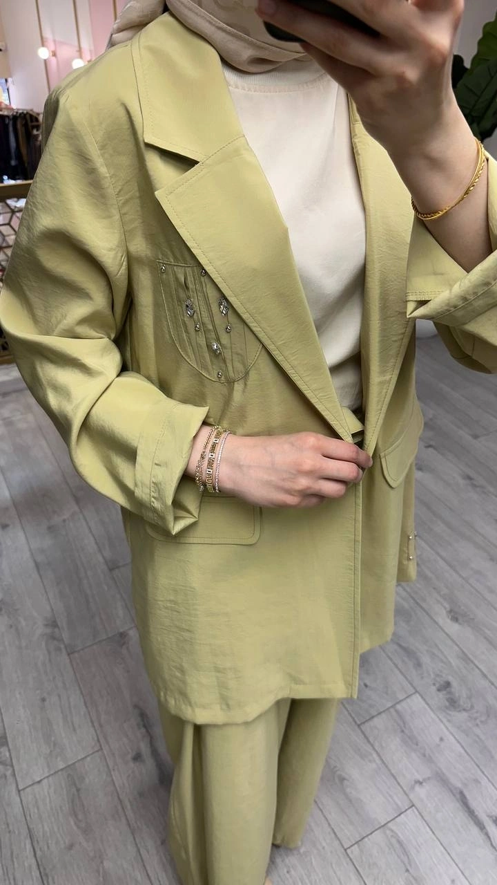 Ceremony Sarı Cebi Taş İşlemeli İkili Takım