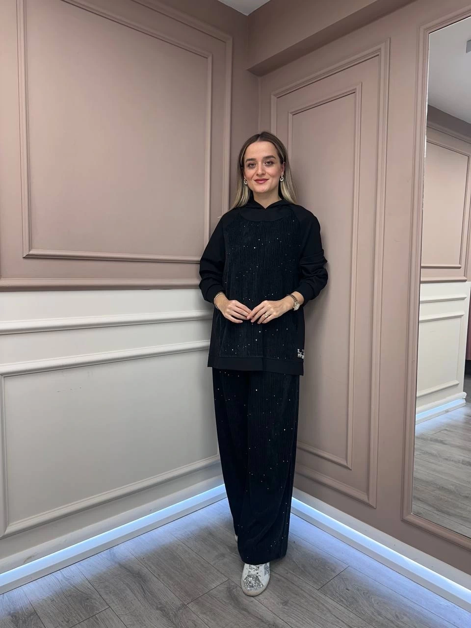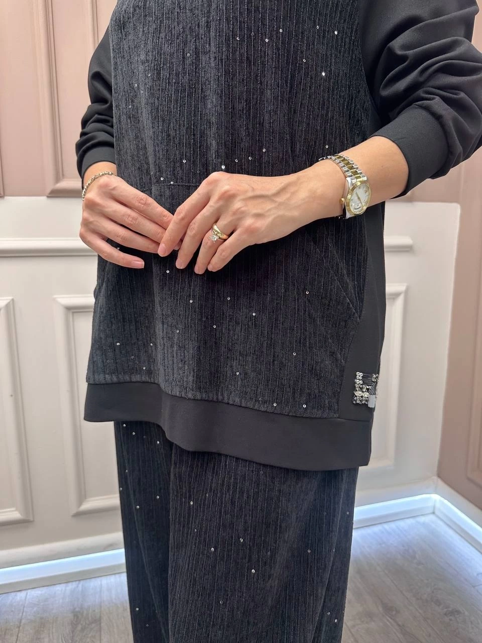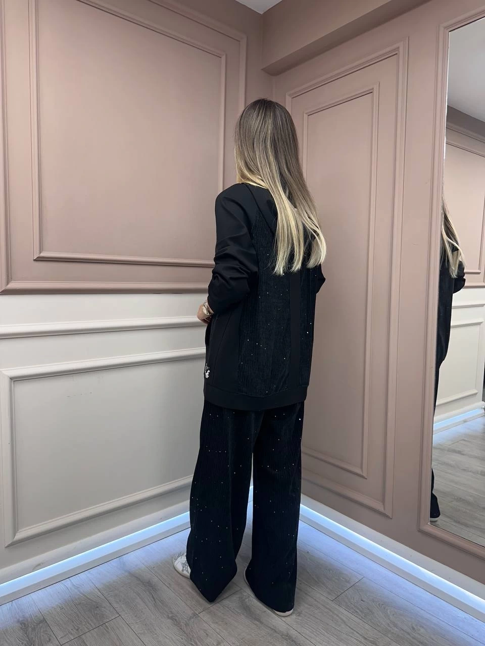 Ceremony Siyah Kadife Pul Detaylı İkili Takım
