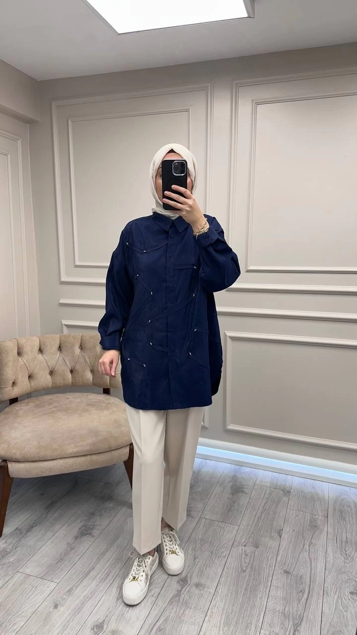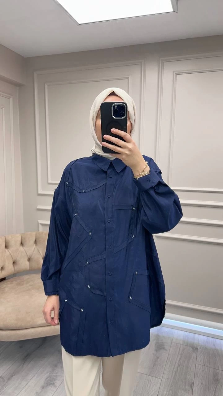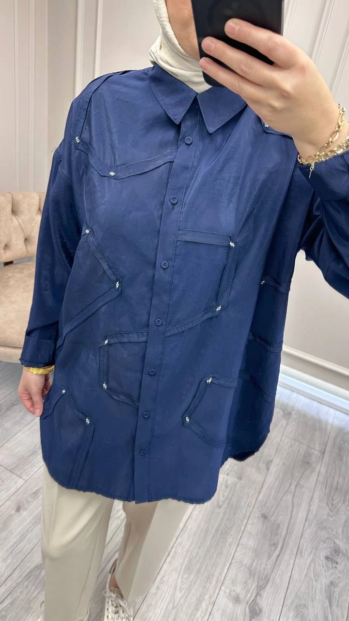 Ceremony Lacivert Düğmeli Dikiş Detaylı Gömlek