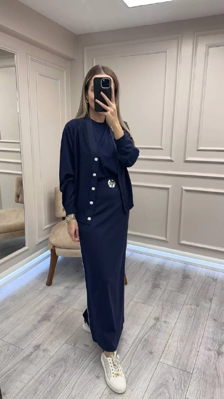 Ceremony 6617 Lacivert Bel Detaylı Çelik Etek