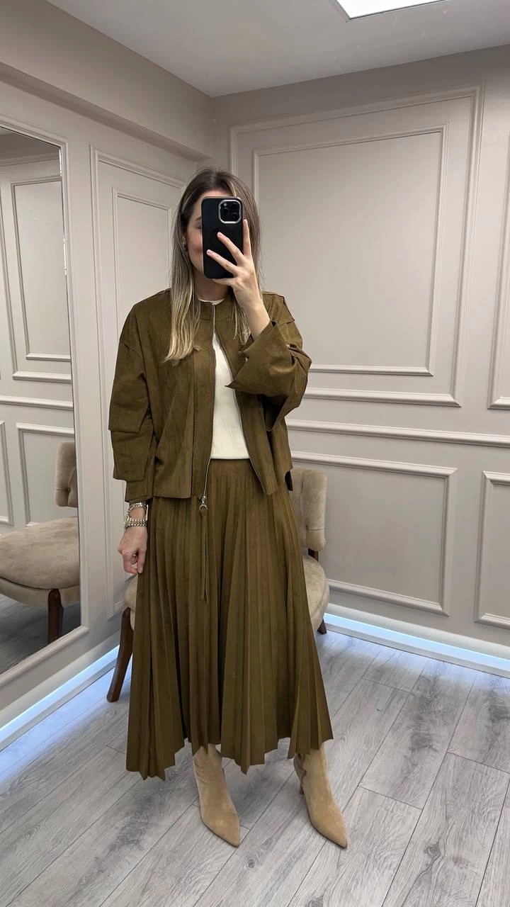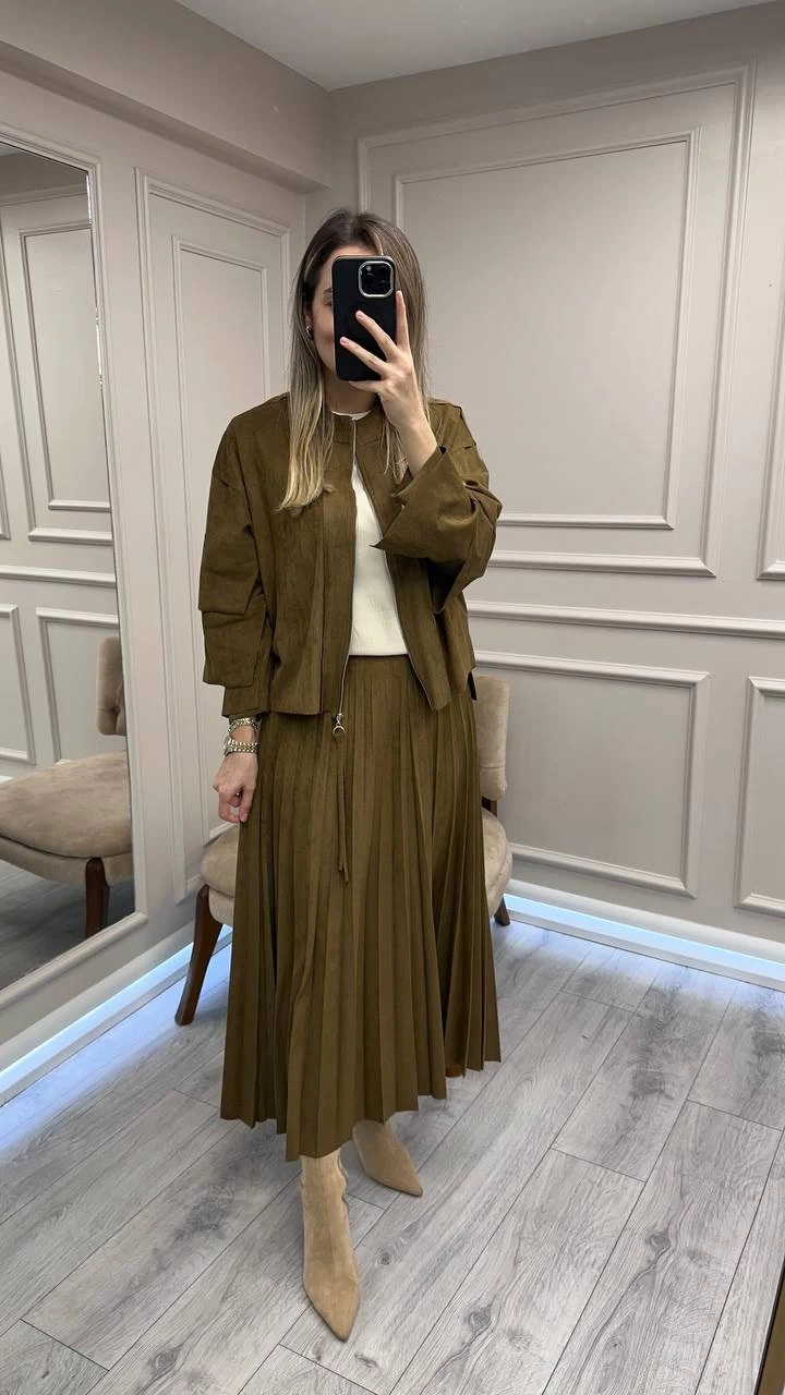 Ceremony 68101 Haki Süet Ceket Etek Takım