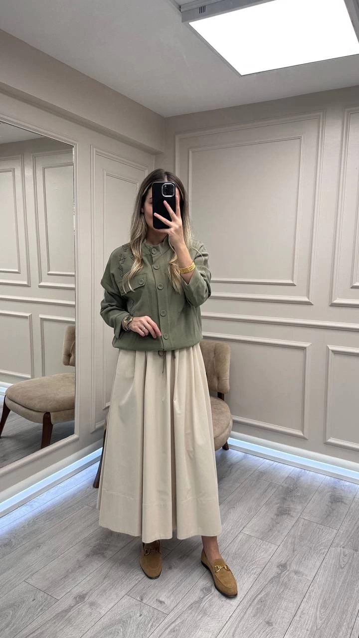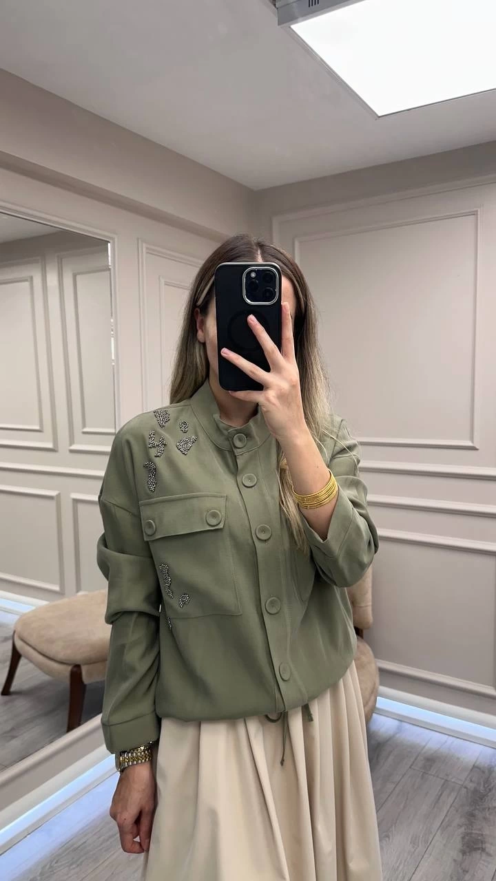 Ceremony 6826 Haki İşleme Detaylı Kısa Ceket