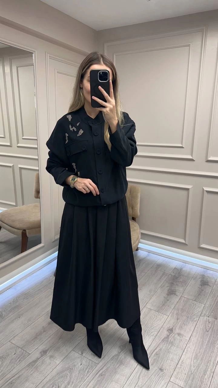 Ceremony Siyah İşleme Detaylı Kısa Ceket