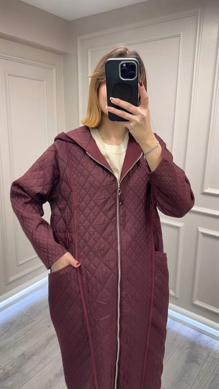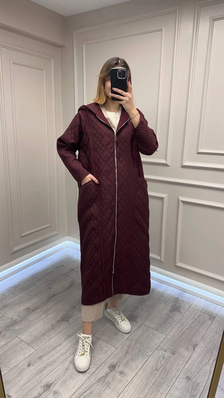 Ceremony Bordo Kapüşonu Fermuar Detaylı Kapitone Kap