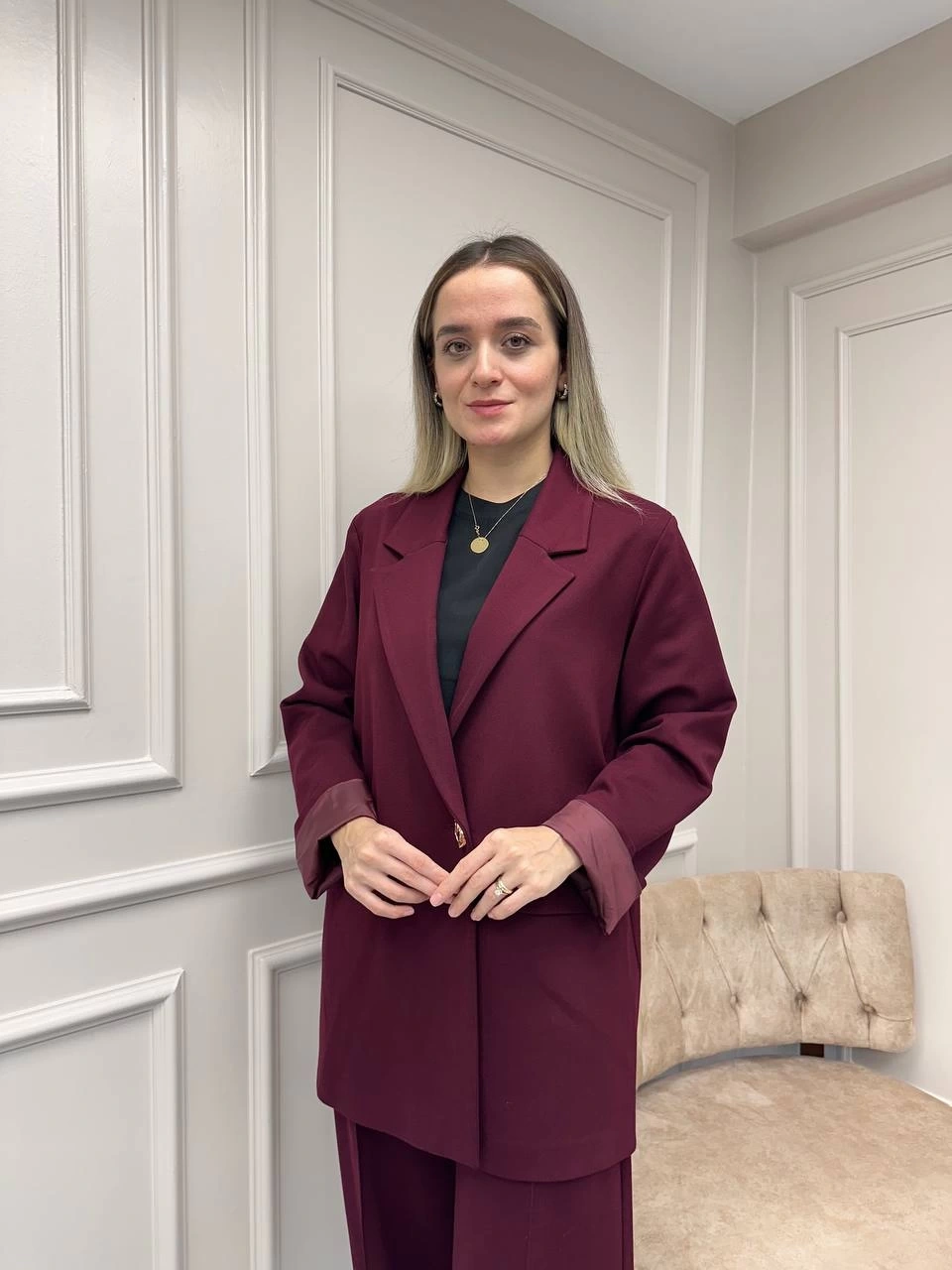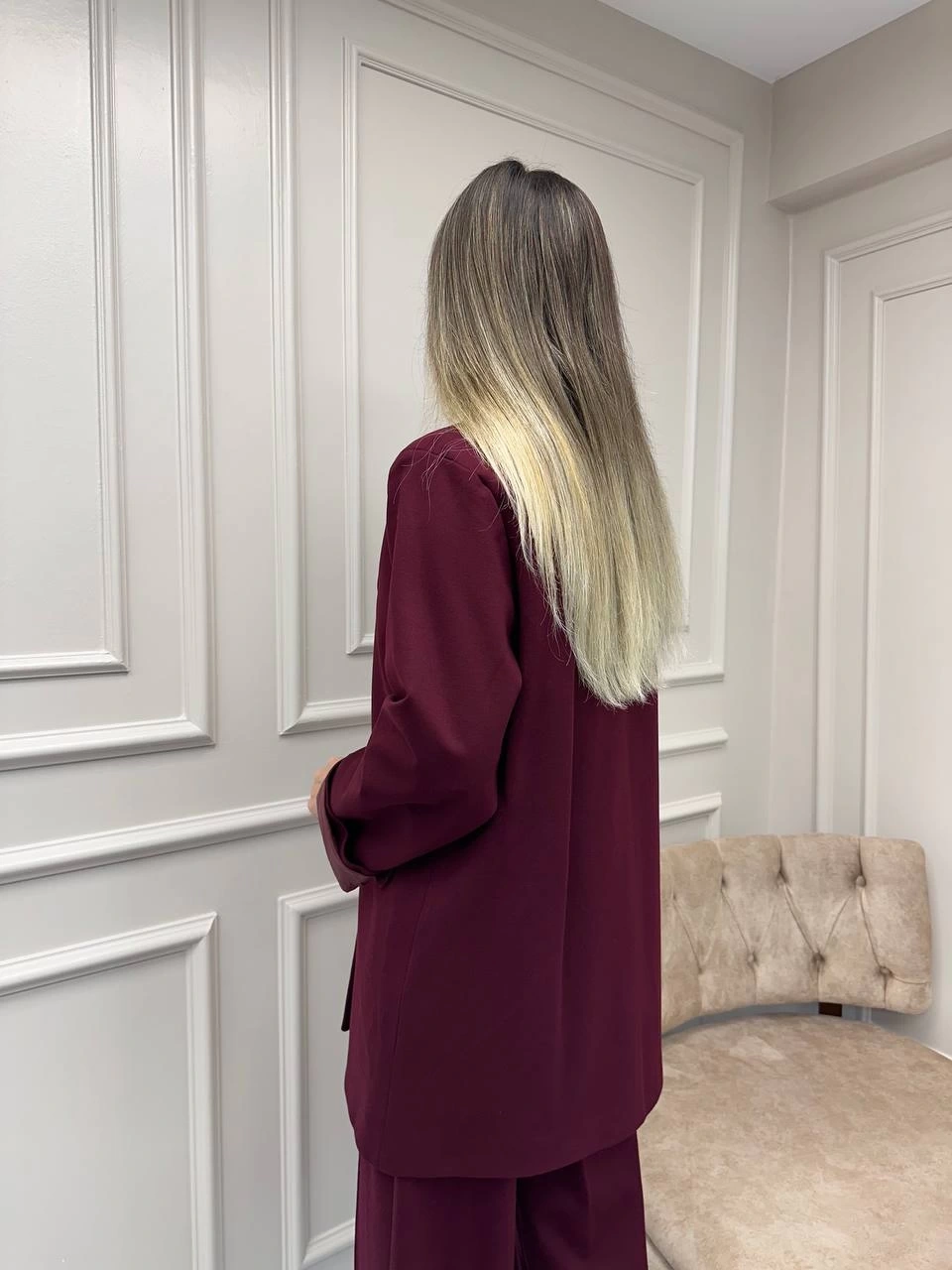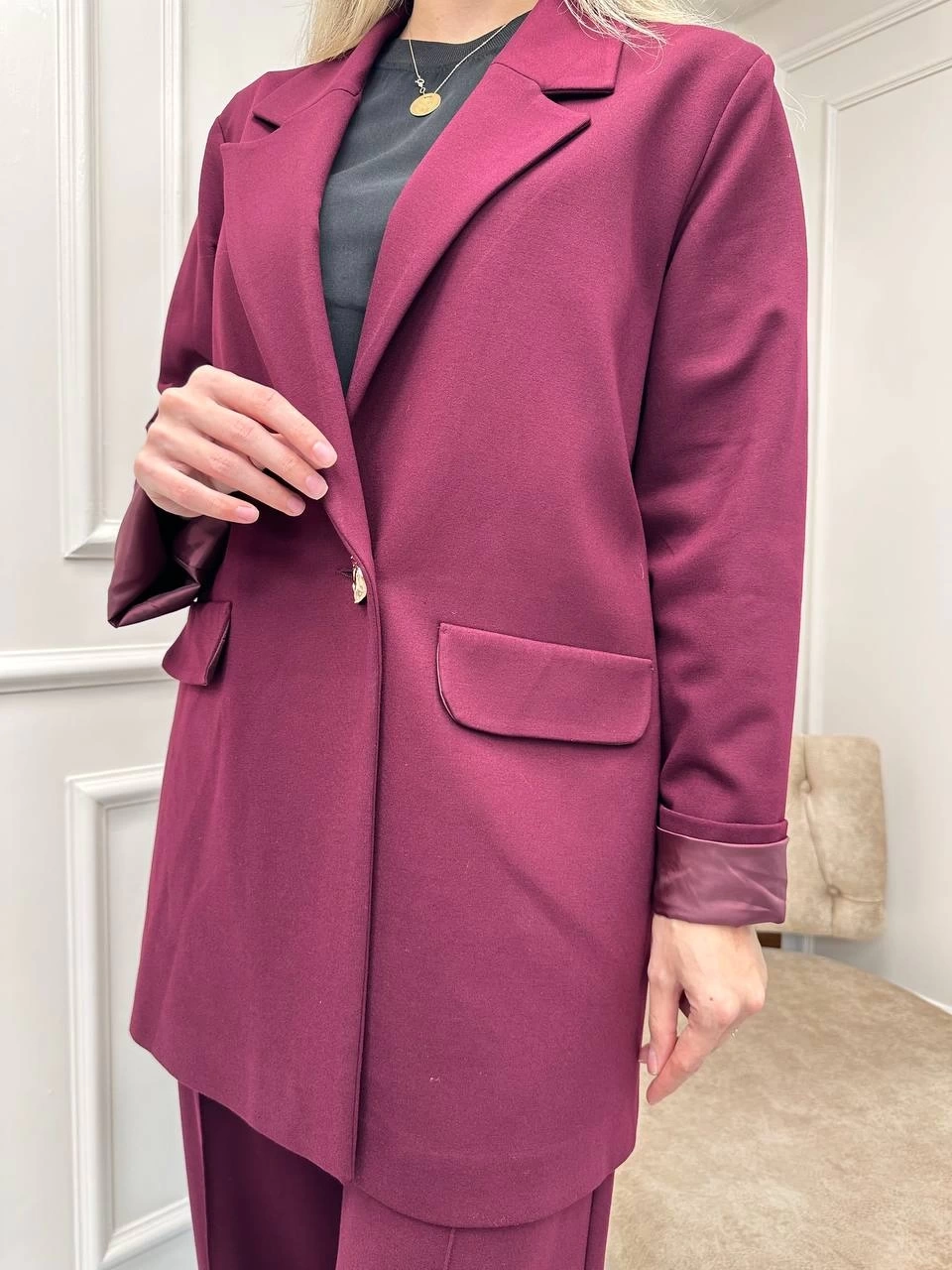 Ceremony 6846 Mürdüm Tek Düğmeli Blazer Çelik Ceket