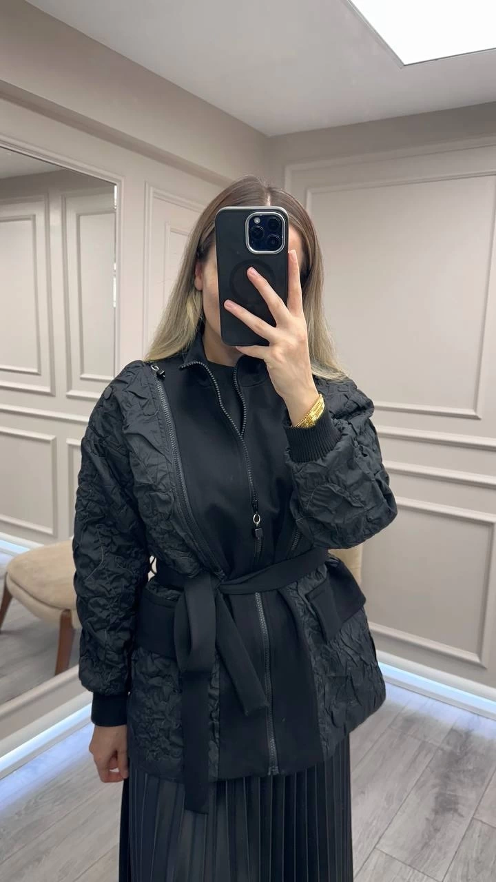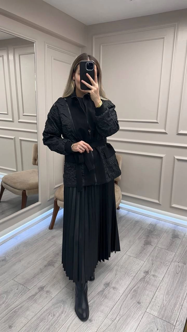 Ceremony 6848 Siyah Örme Garnili Kısa Kap