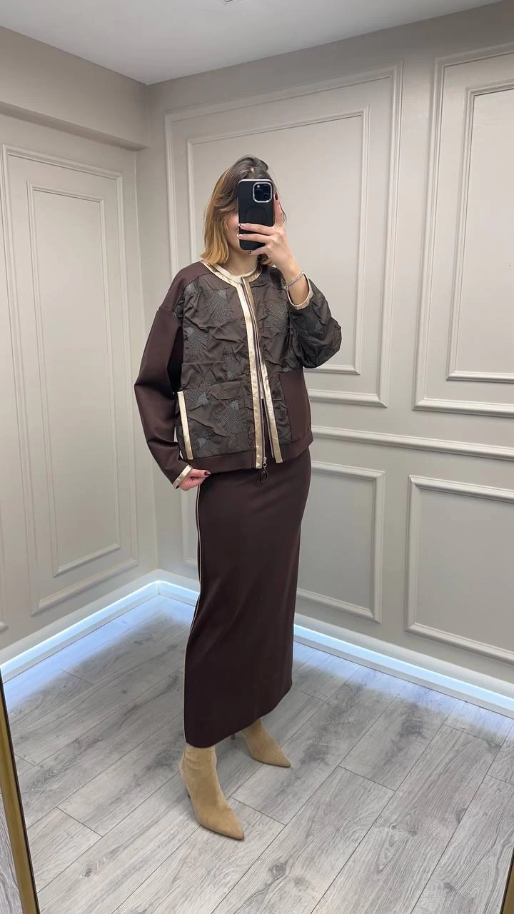 Ceremony 6850 Kahverengi Deri Garnili Kap