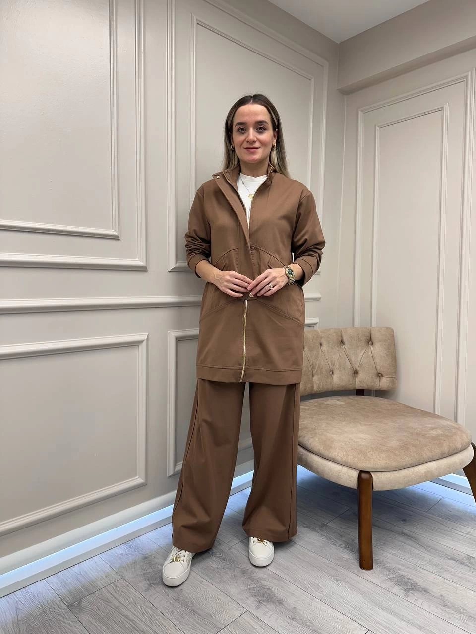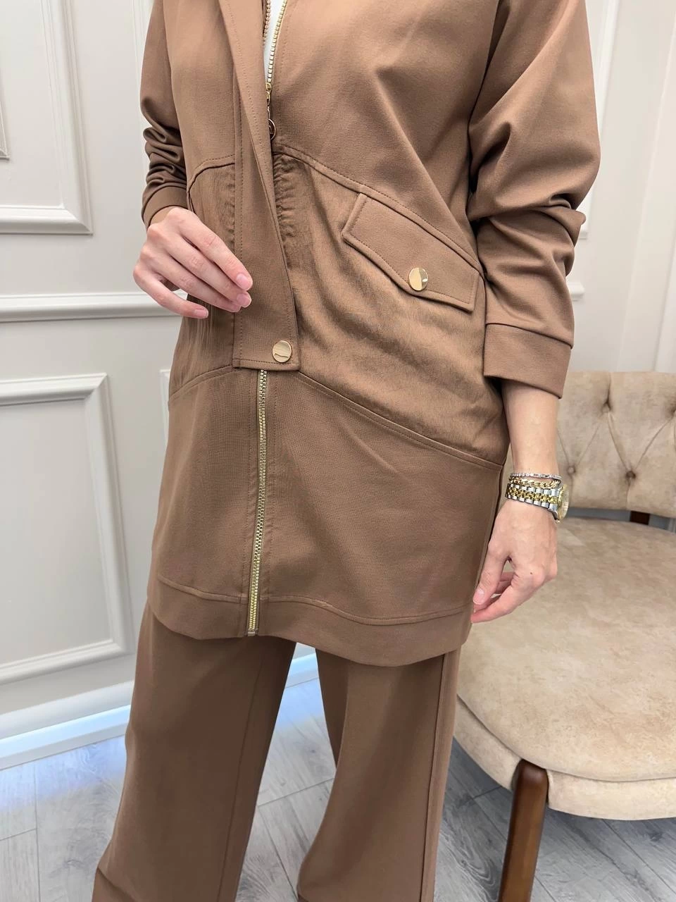 Ceremony Camel Önden Fermuarlı Yarım Patlı Ceketli Takım