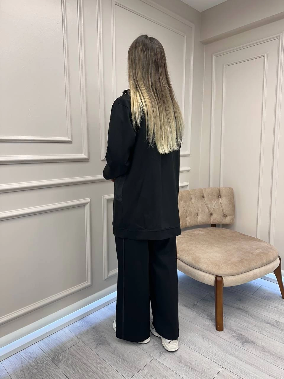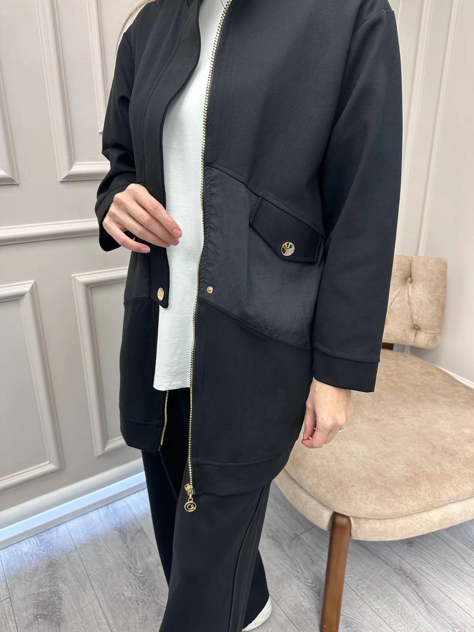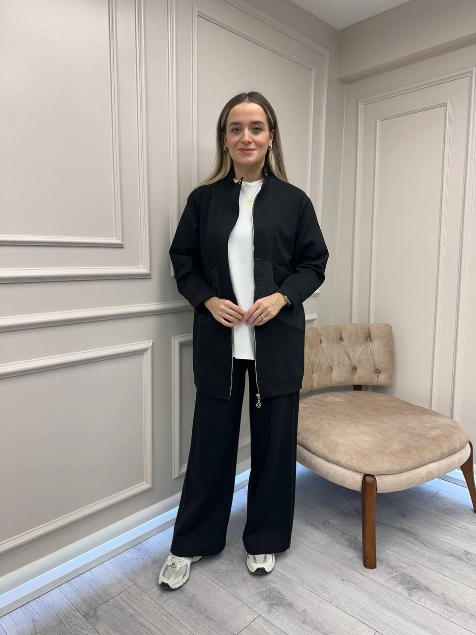 Ceremony Siyah Önden Fermuarlı Yarım Patlı Ceketli Takım