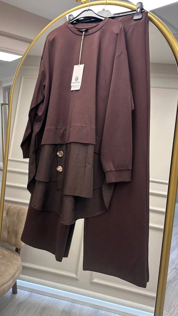Ceremony Kahverengi Önü Gold Düğme Detaylı Takım