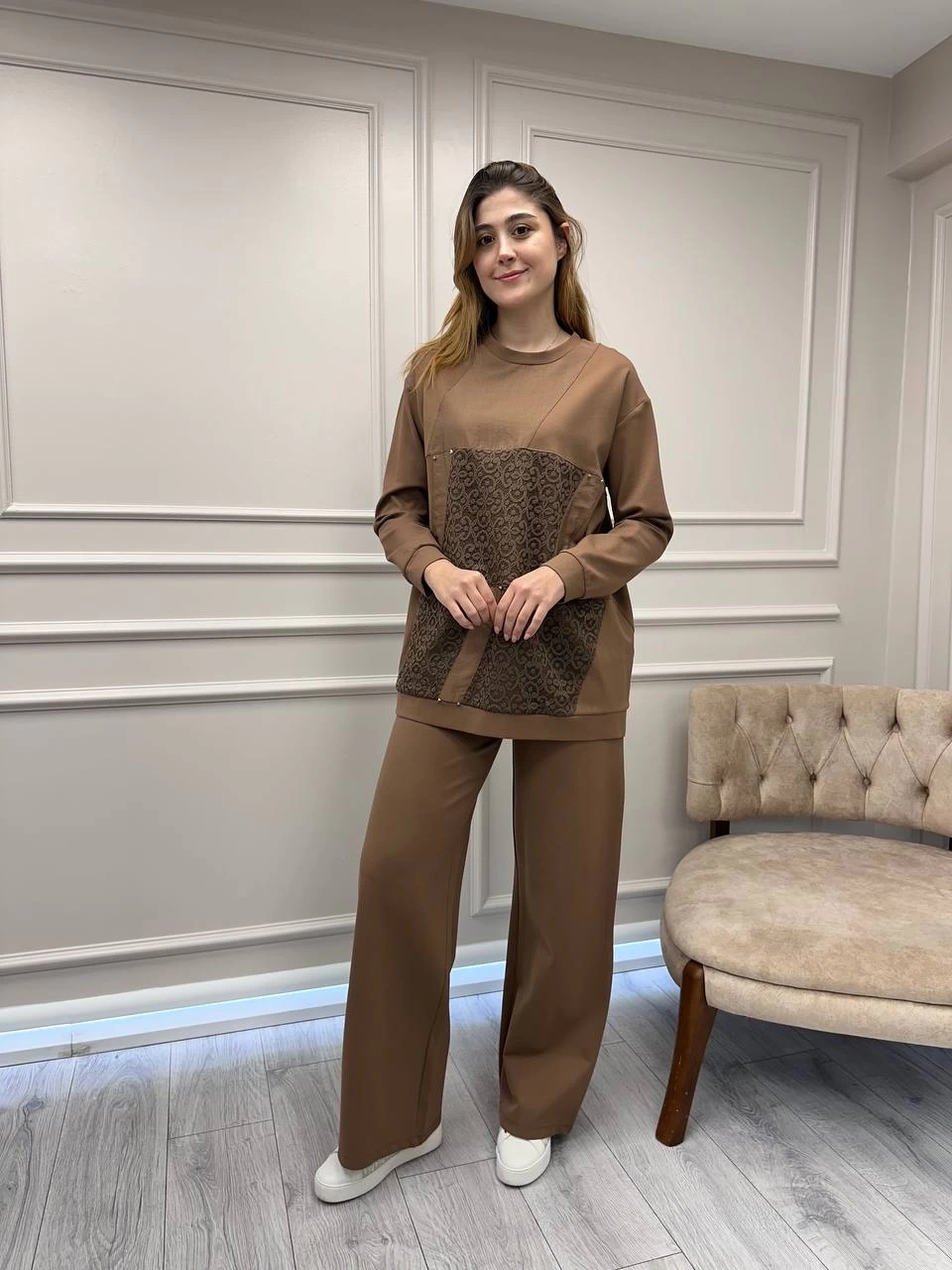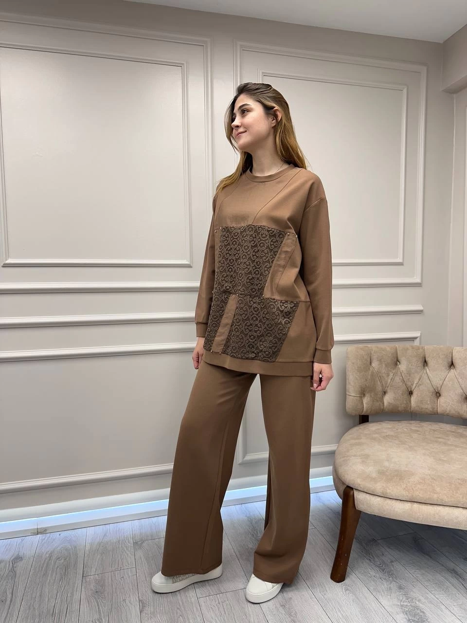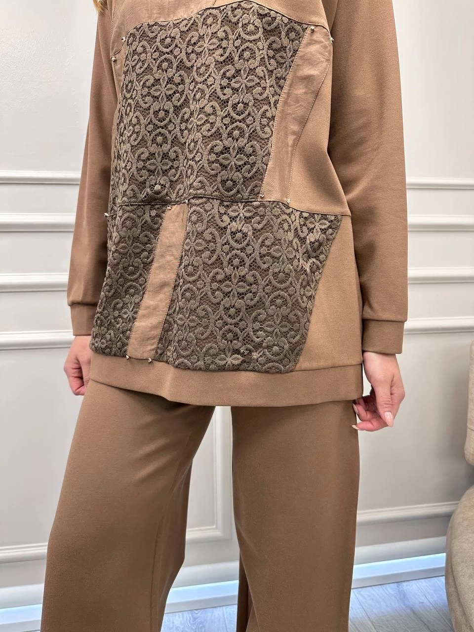 Ceremony Camel Dantel Detaylı İkili Takım