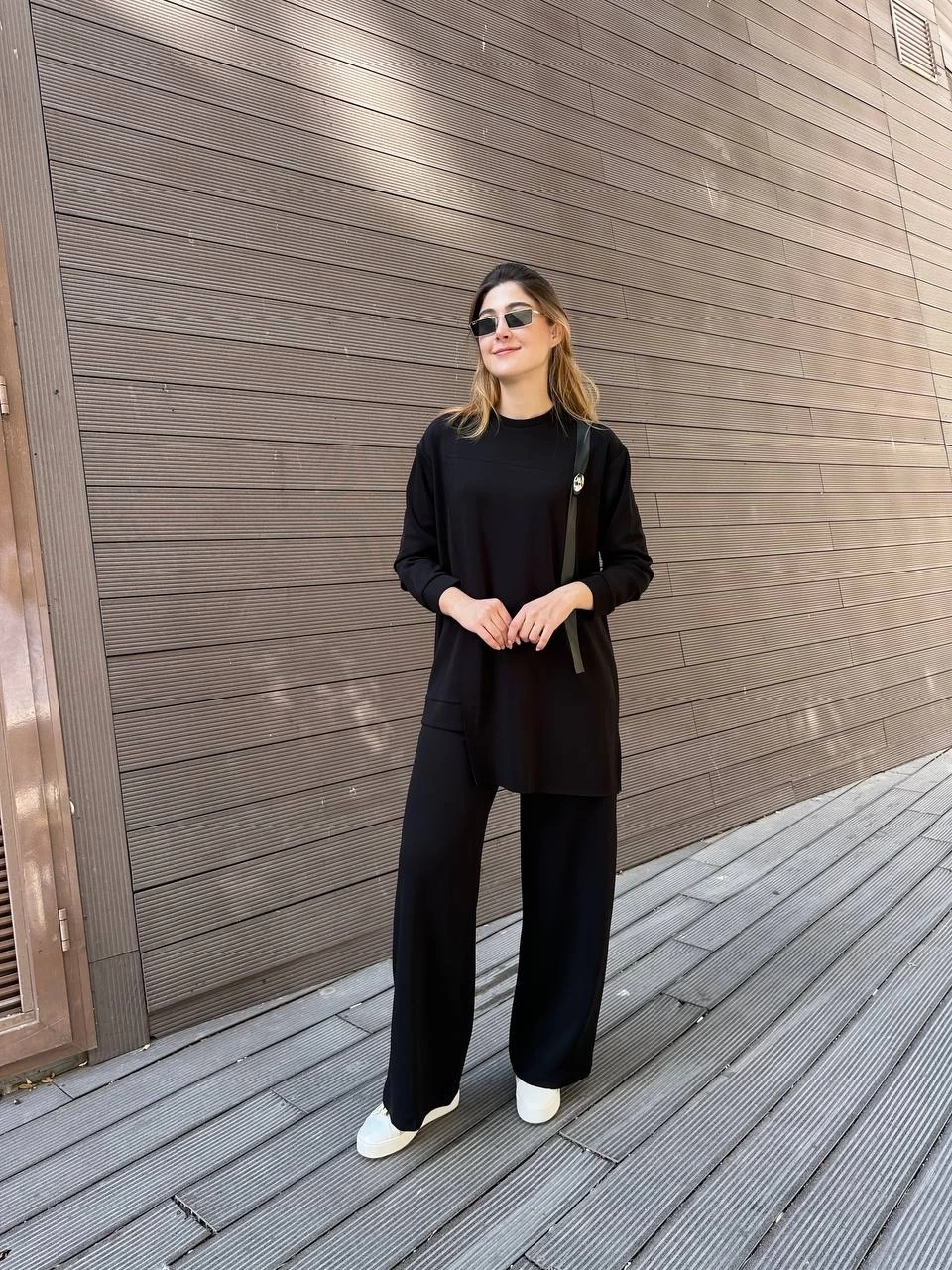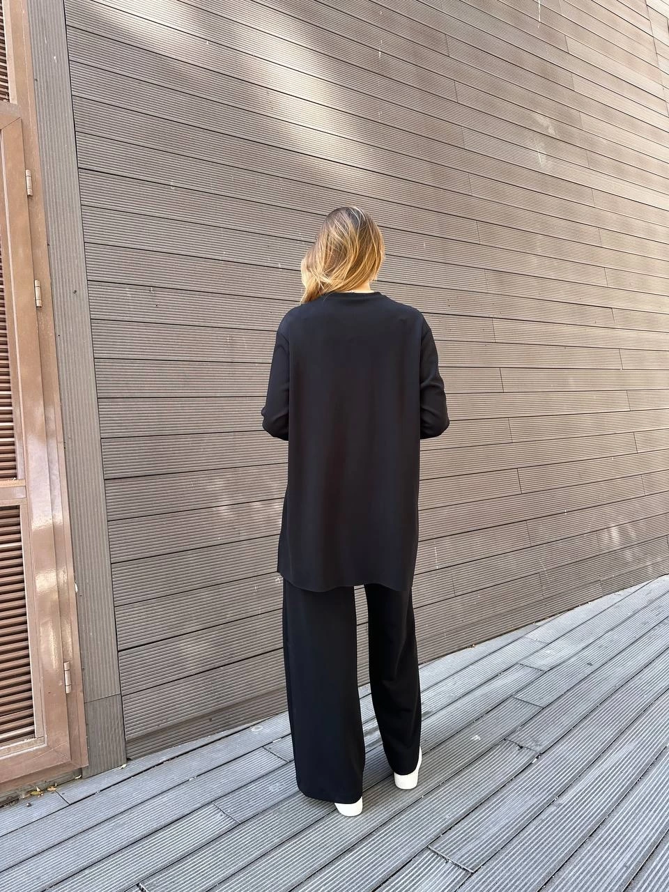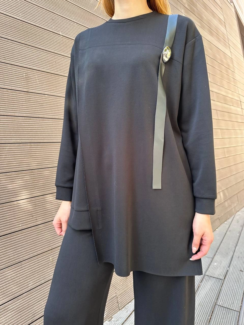 Ceremony Siyah Tek Omzu Deri Ve Aksesuar Detaylı Takım