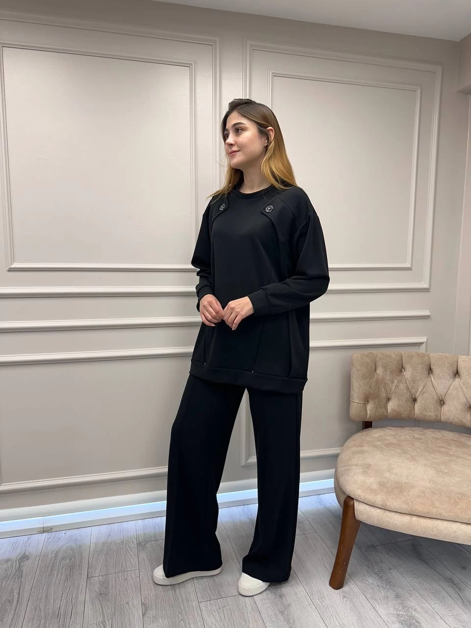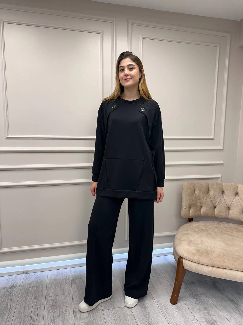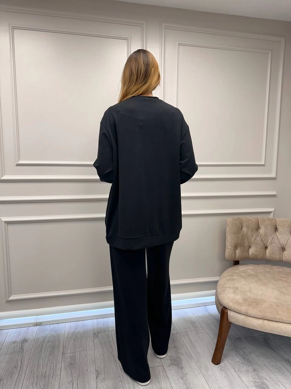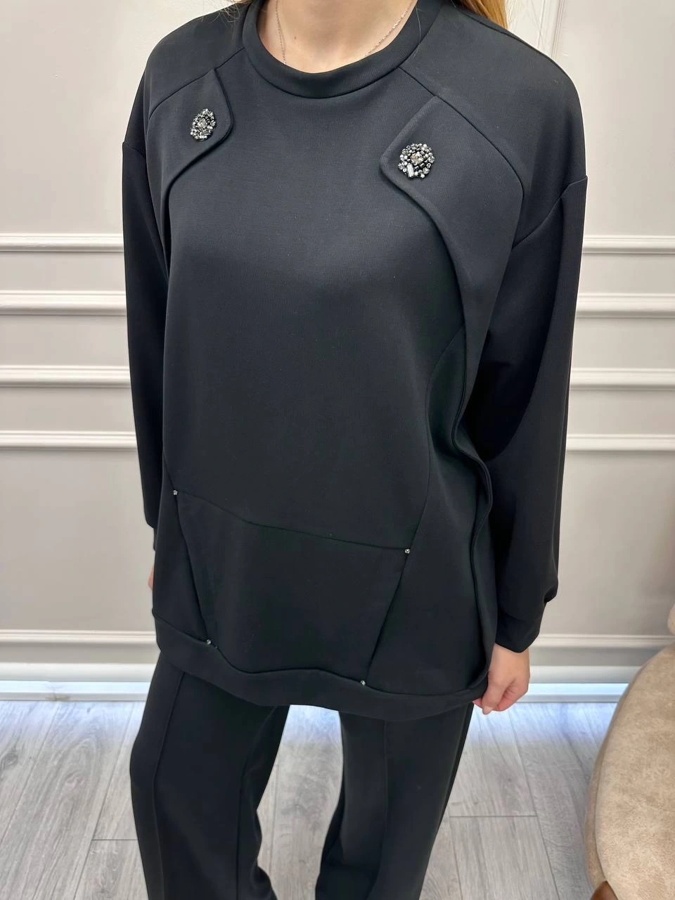 Ceremony 6947 Siyah Kanguru Cepli Taş İşlemeli Takım
