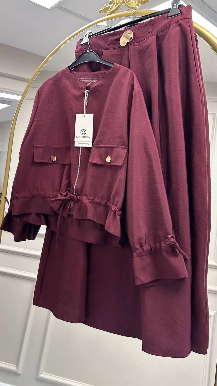 Ceremony 6950 Bordo Eteği Toka Detaylı Takım