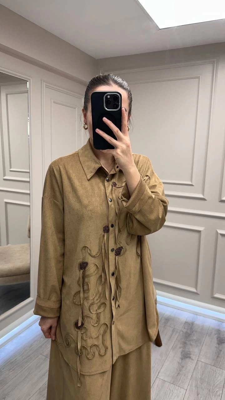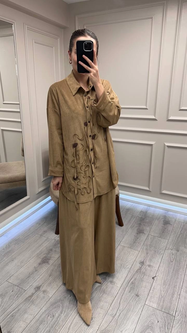 Ceremony 6957 Camel Nakışlı Pantolonlu Takım