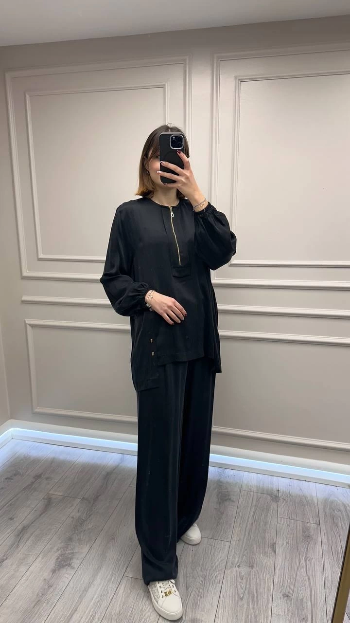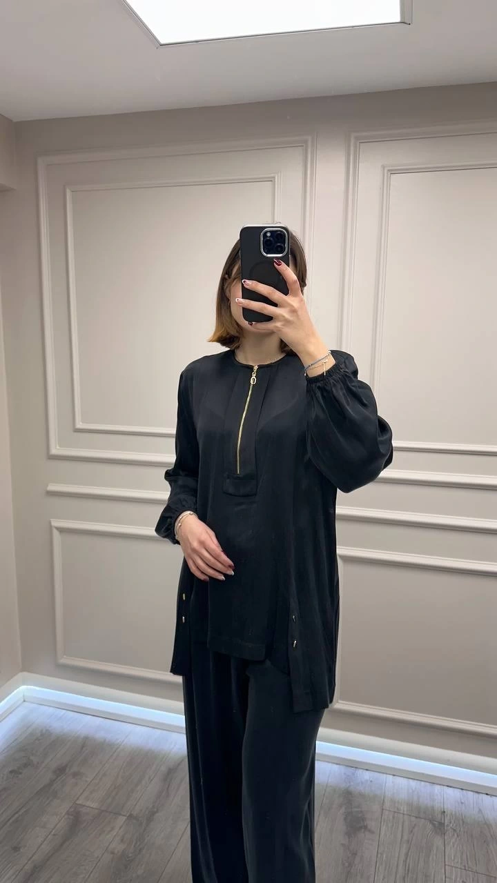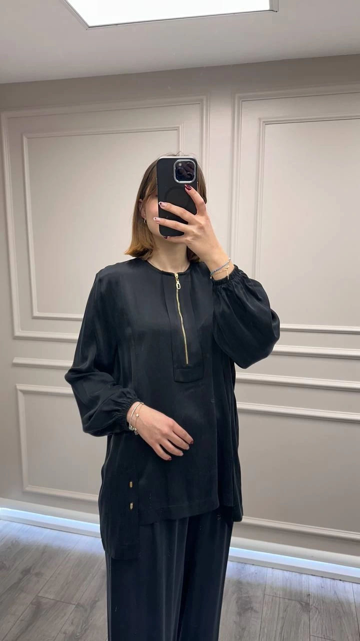 Clande CL25023000 Siyah Önü Fermuarlı Bluz
