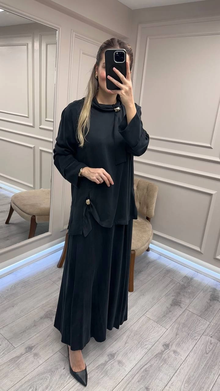 Clande CL25023014 Siyah Yaka Detaylı Etekli Takım