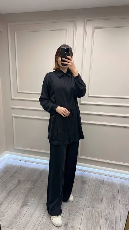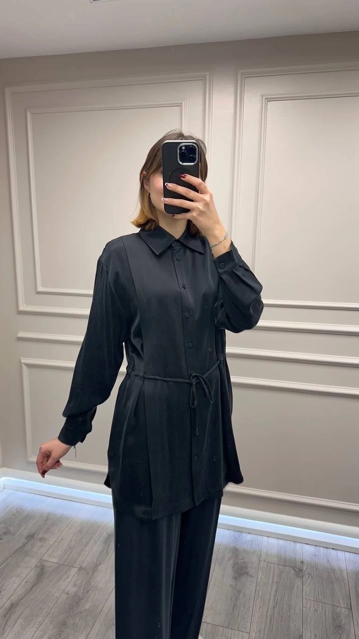 Clande CL25023019 Siyah Bağlama Detaylı Bluz