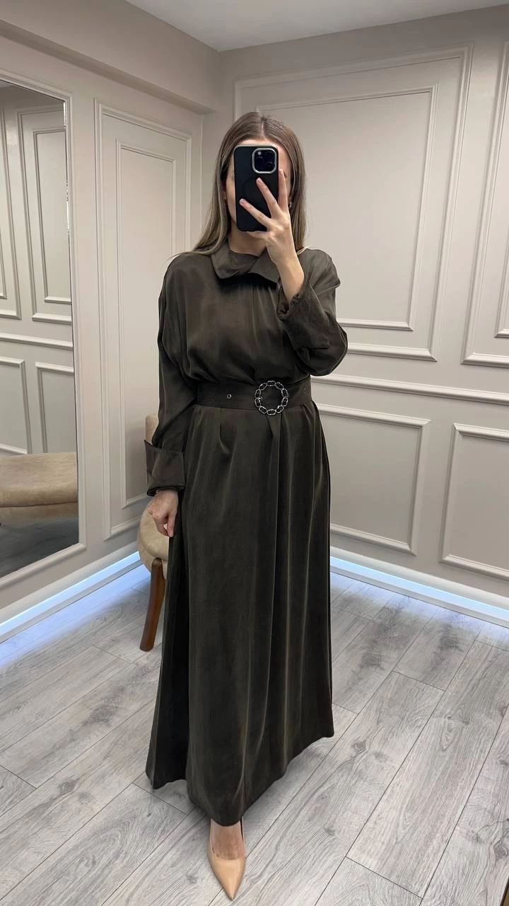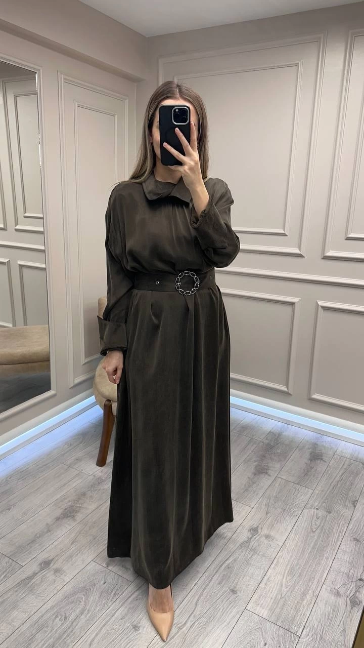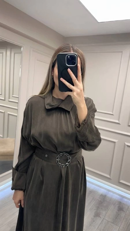 Clande CL25025001 Kahve Yaka Detaylı Elbise