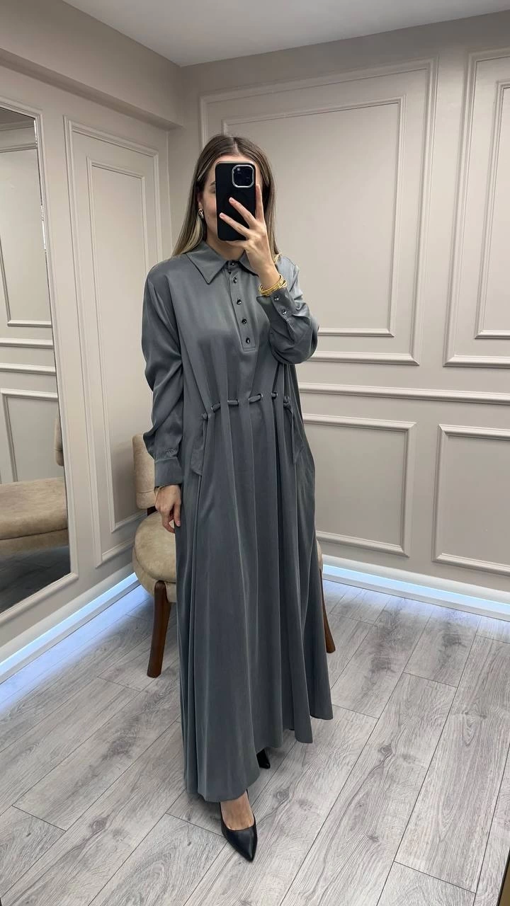 Clande CL25025007 Antrasit Bel Detaylı Elbise