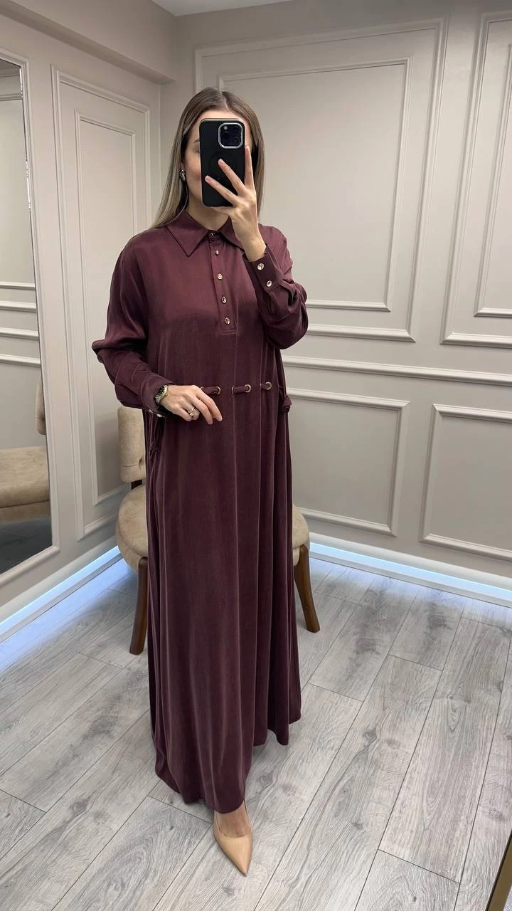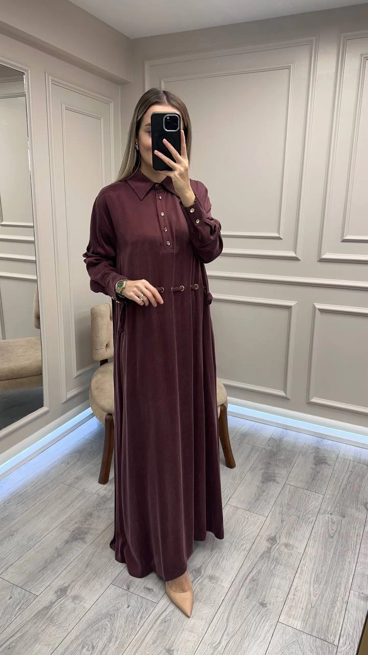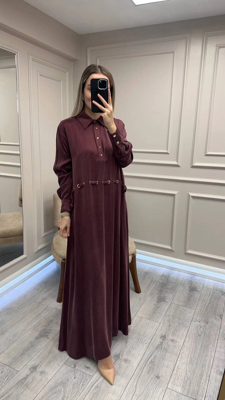 Clande CL25025007 Bordo Bel Detaylı Elbise