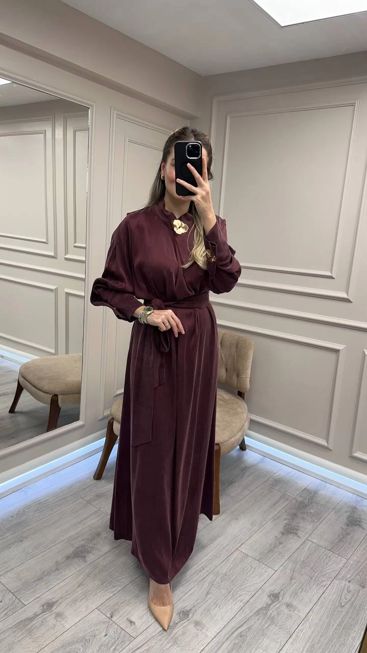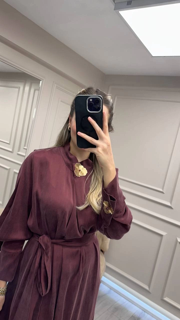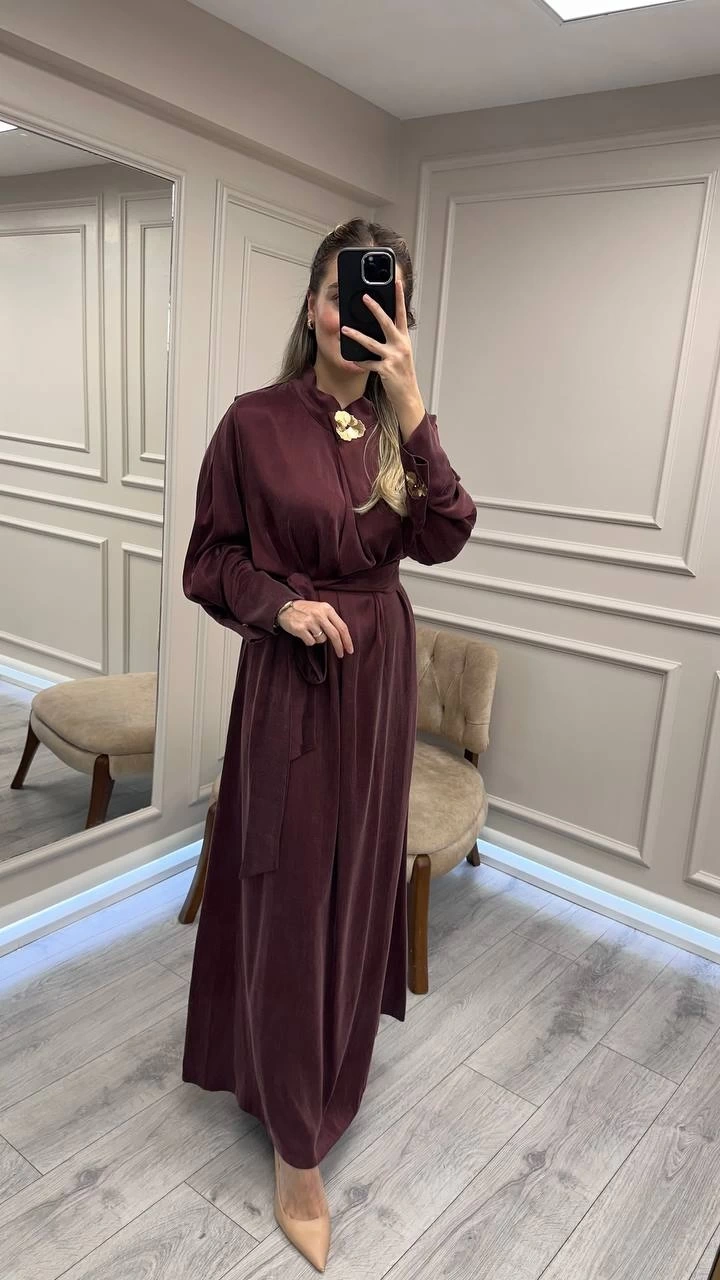 Clande CL25025011 Bordo Broş Detaylı Elbise