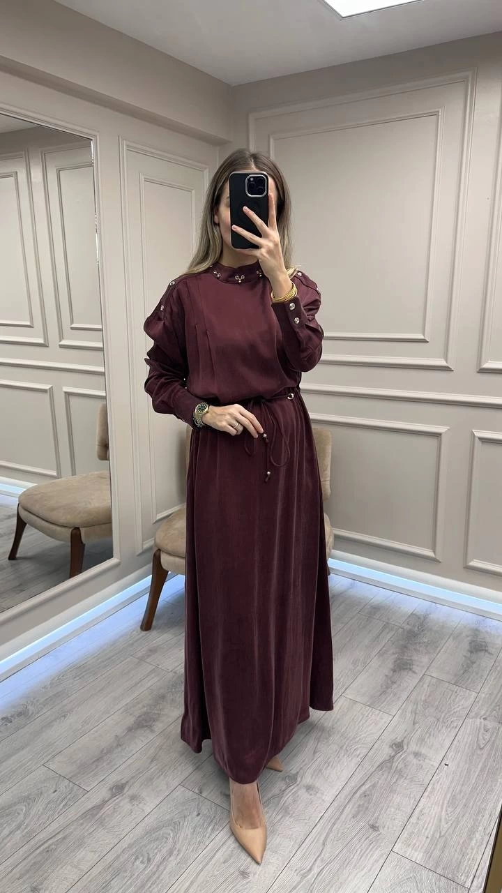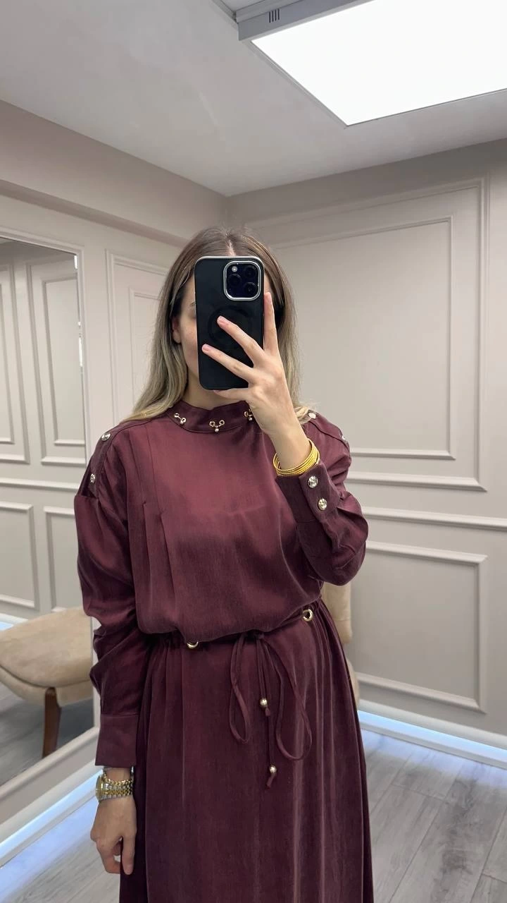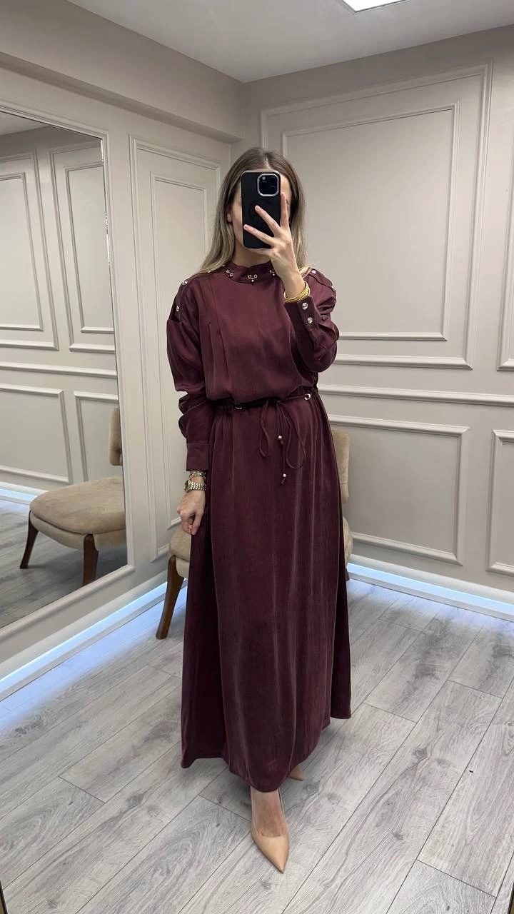 Clande CL25055006 Bordo Yaka Detaylı Elbise