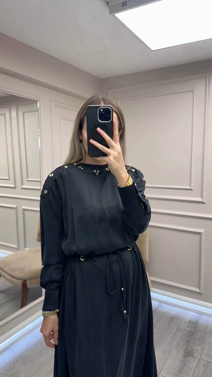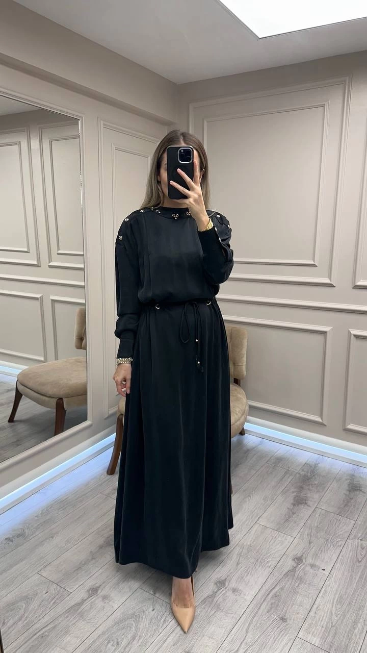 Clande CL25055006 Siyah Yaka Detaylı Elbise