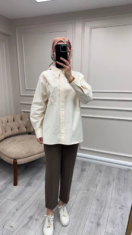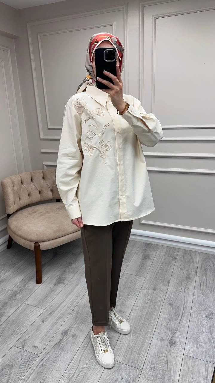 Exquise Krem Kierra Gömlek