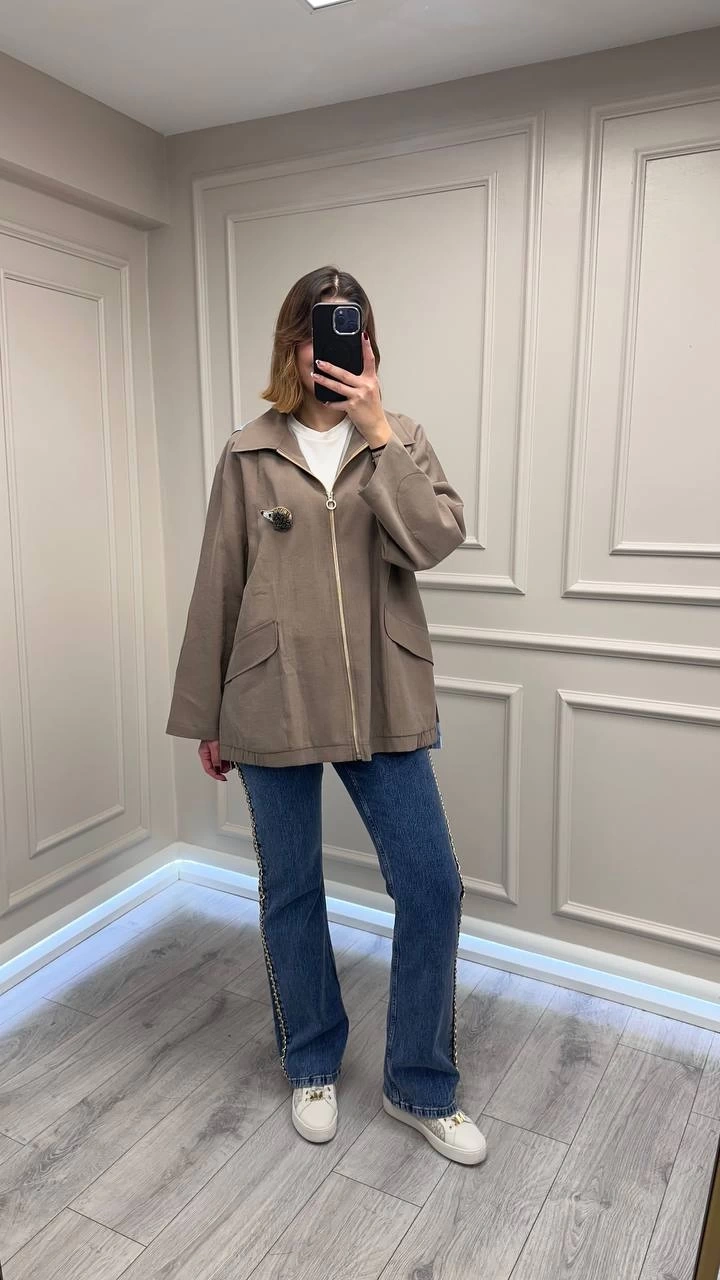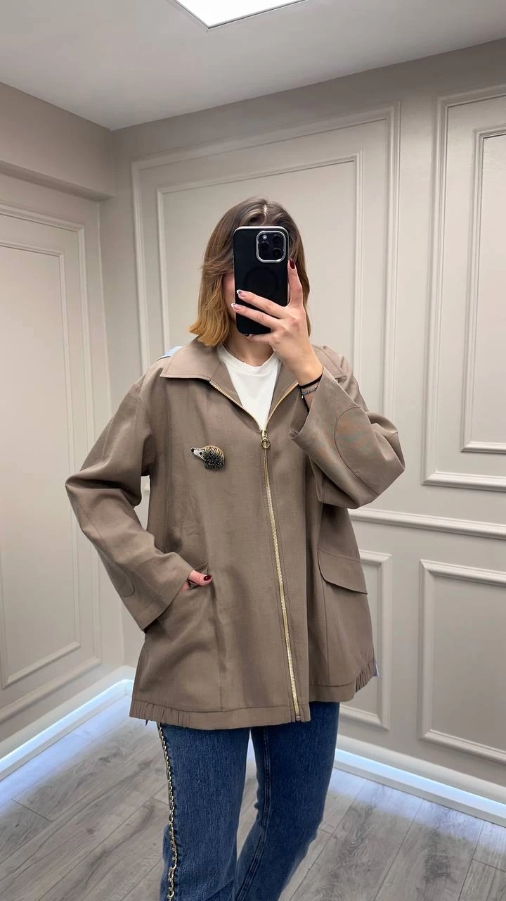 Ghisa 26KGSCKT3299 Vizon Broş Detaylı Ceket