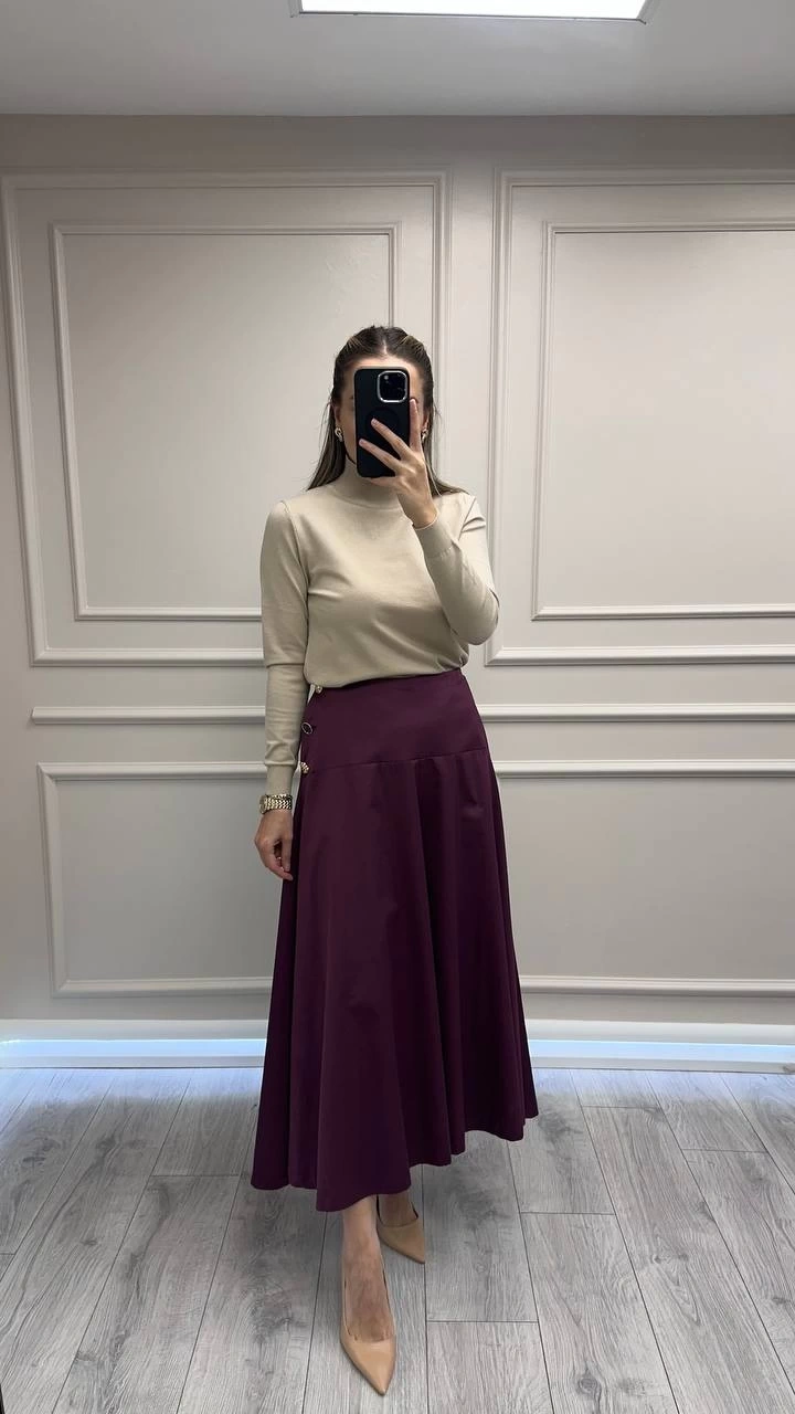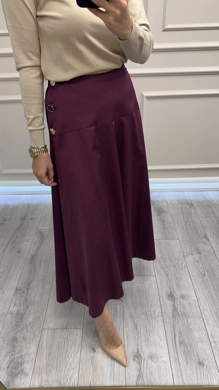Ghisa Bordo Yanları Düğme Detaylı Etek