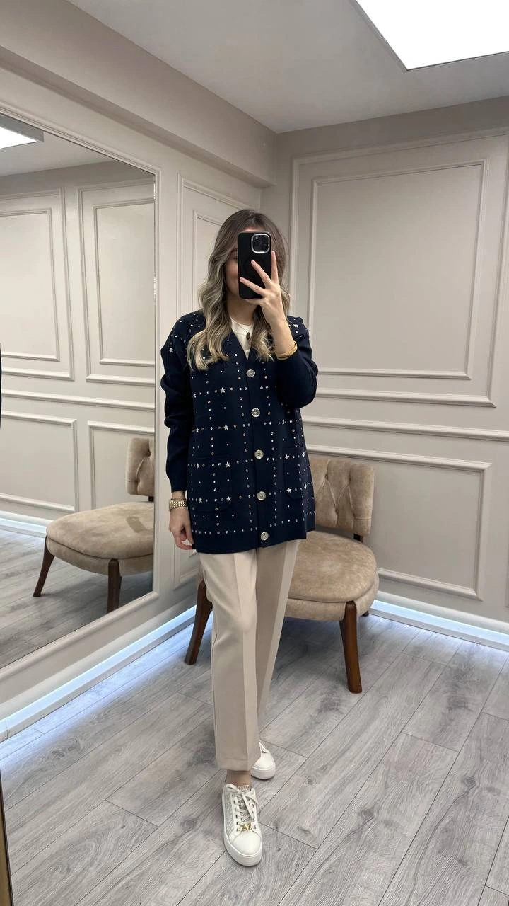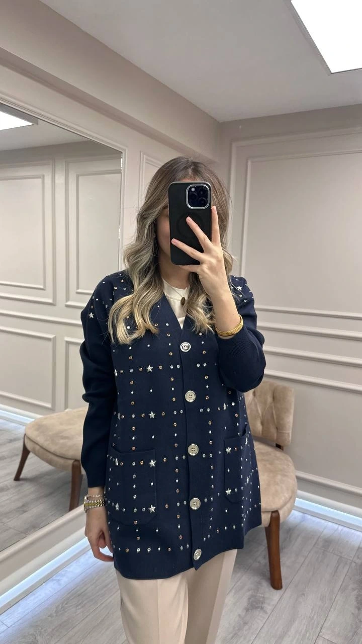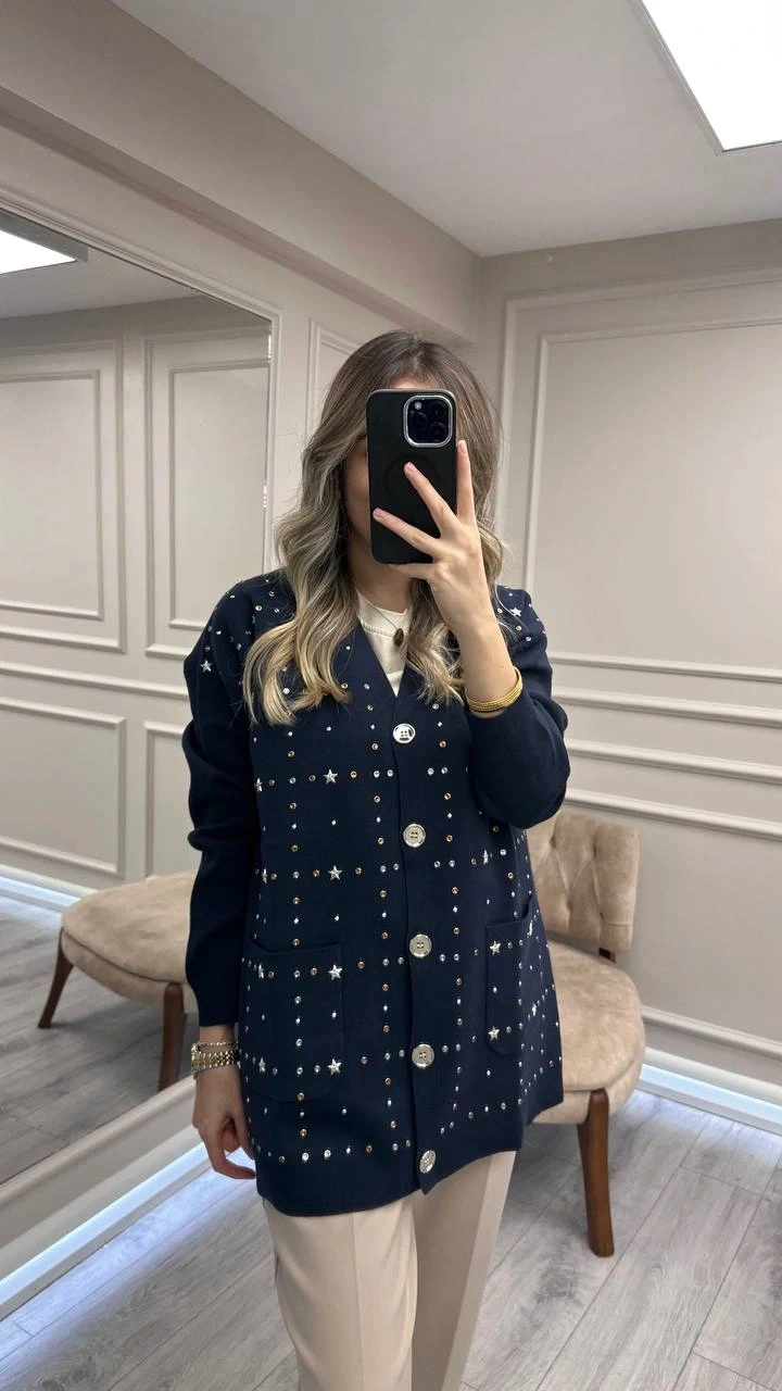 Ghisa Lacivert Taş Detaylı Hırka