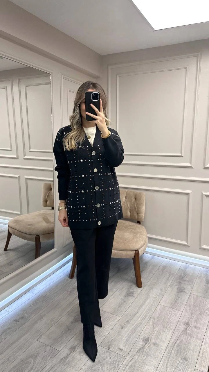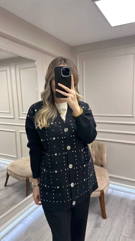 Ghisa Siyah Taş Detaylı Hırka