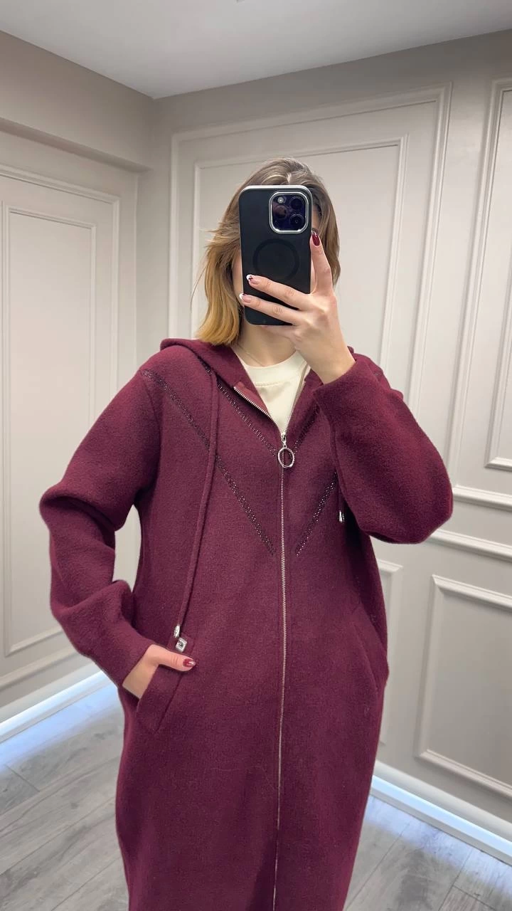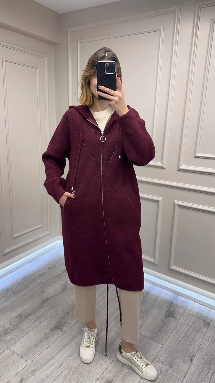 Ghisa Bordo Taş Detaylı Angora Kaban