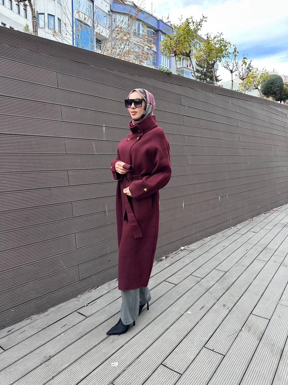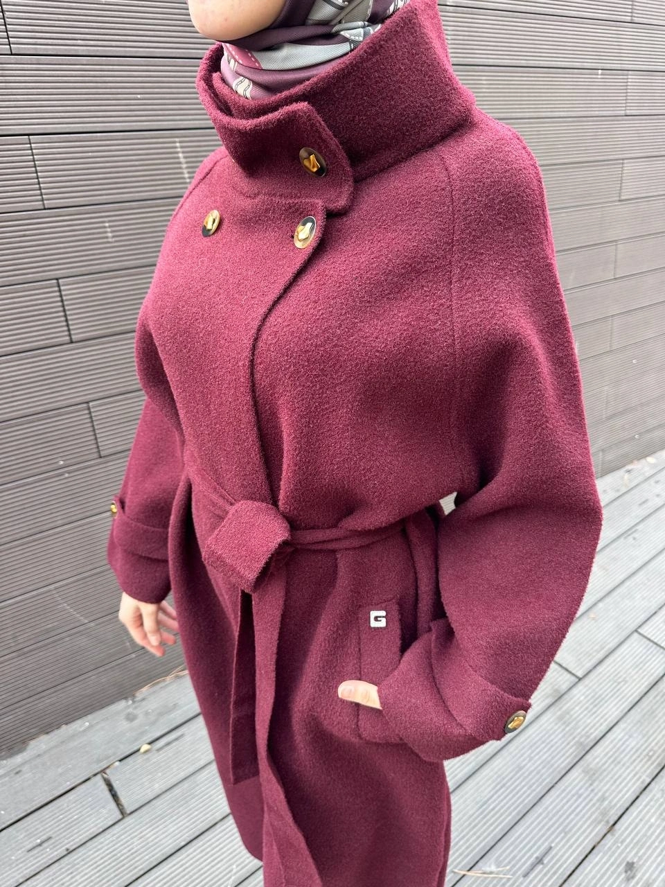 Ghisa 26KGSKBN6550 Mürdüm Anvelop Dik Yaka Kaban