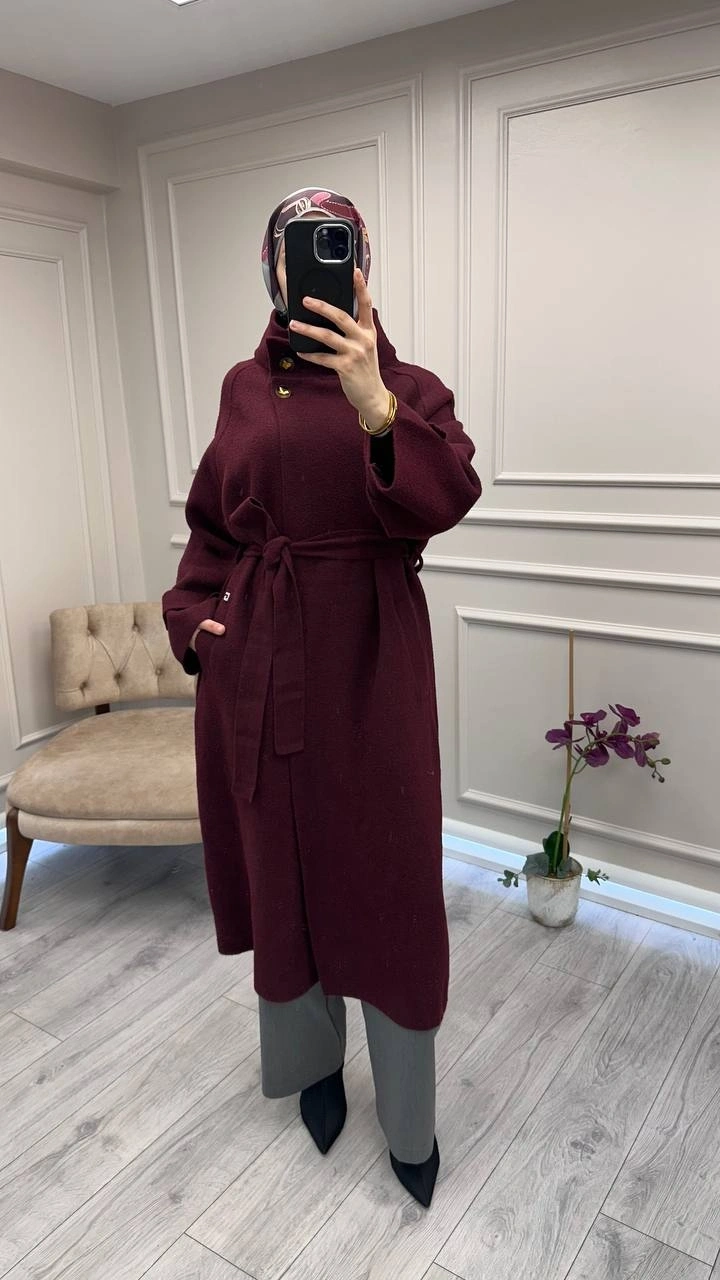Ghisa Mürdüm Anvelop Dik Yaka Kaban