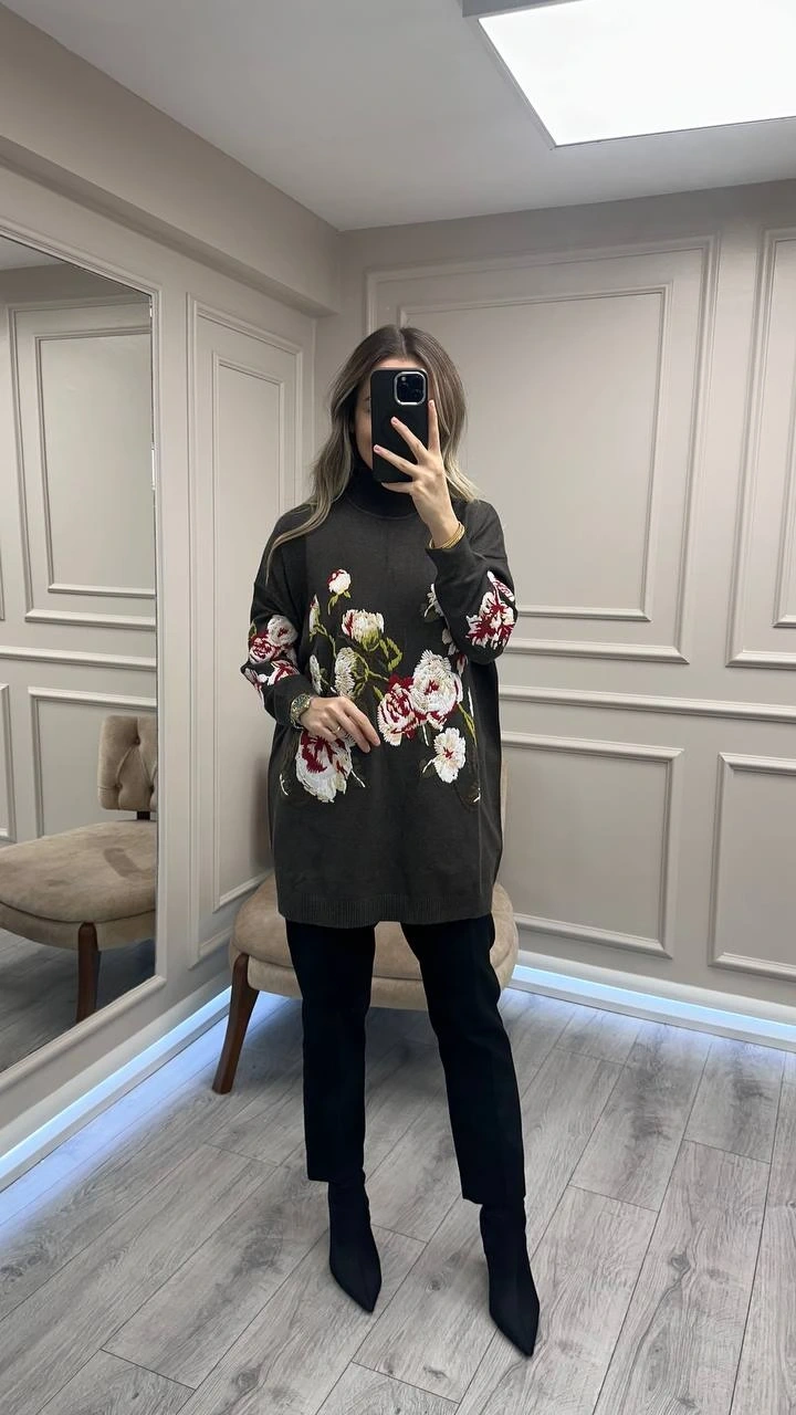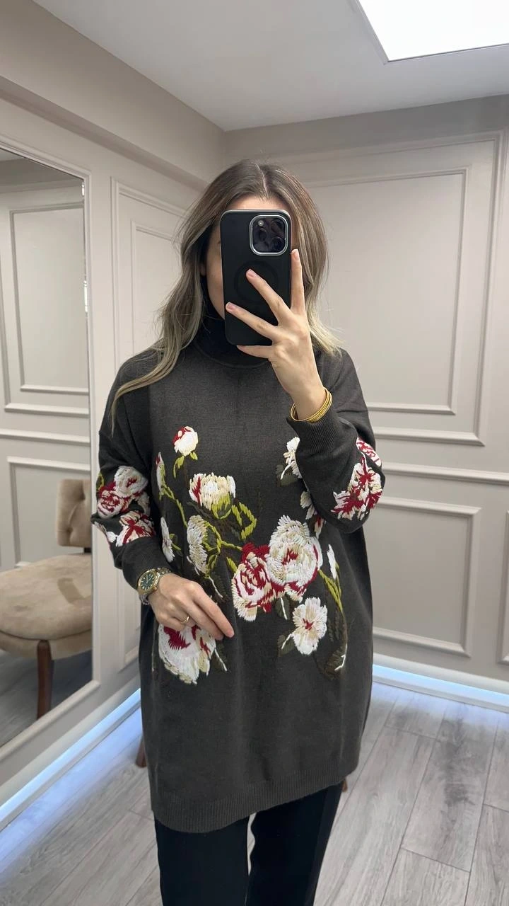 Ghisa Gri Nakış Detaylı Tunik