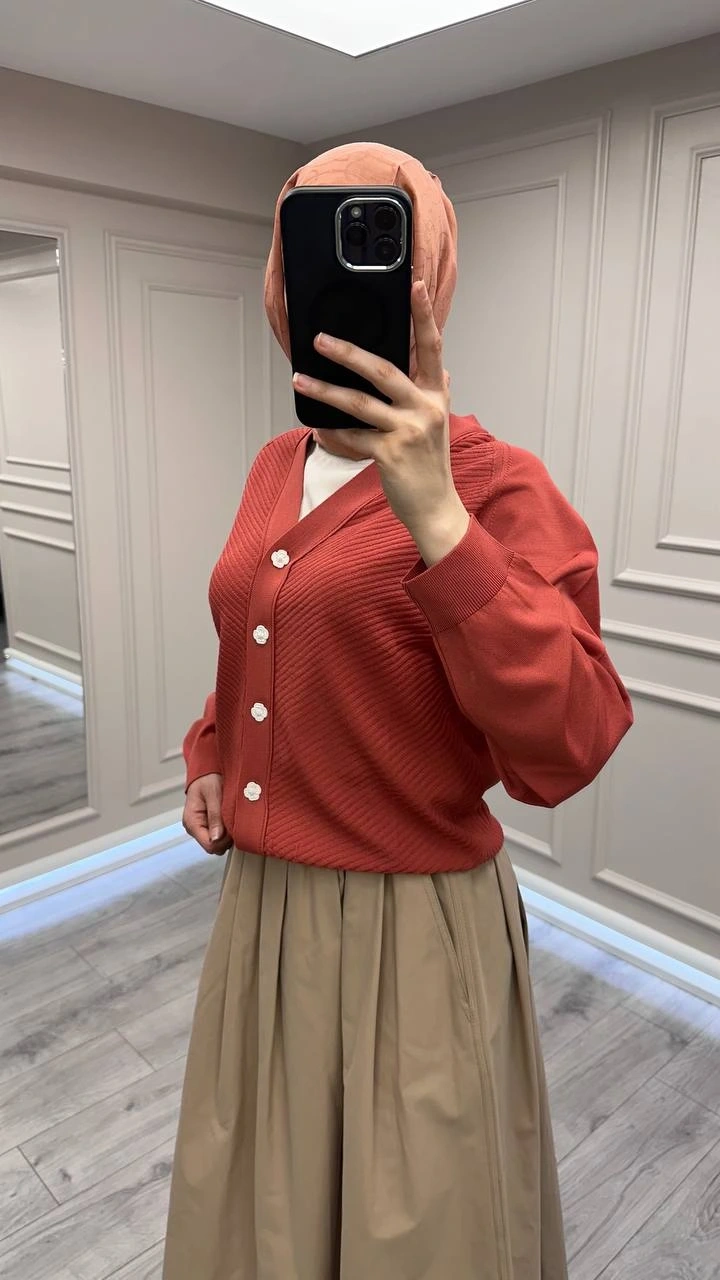 Ghisa 26KOBHRK3183 Taba V Yaka Triko Hırka