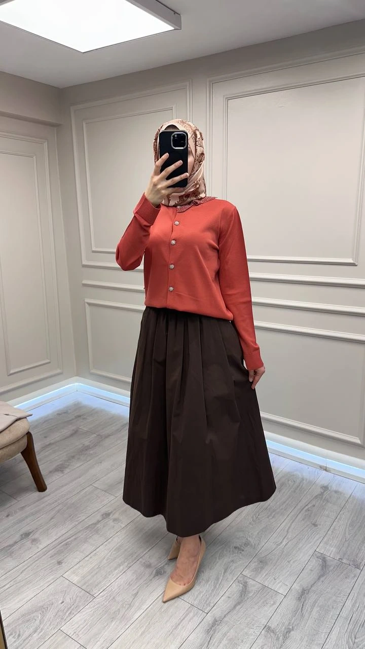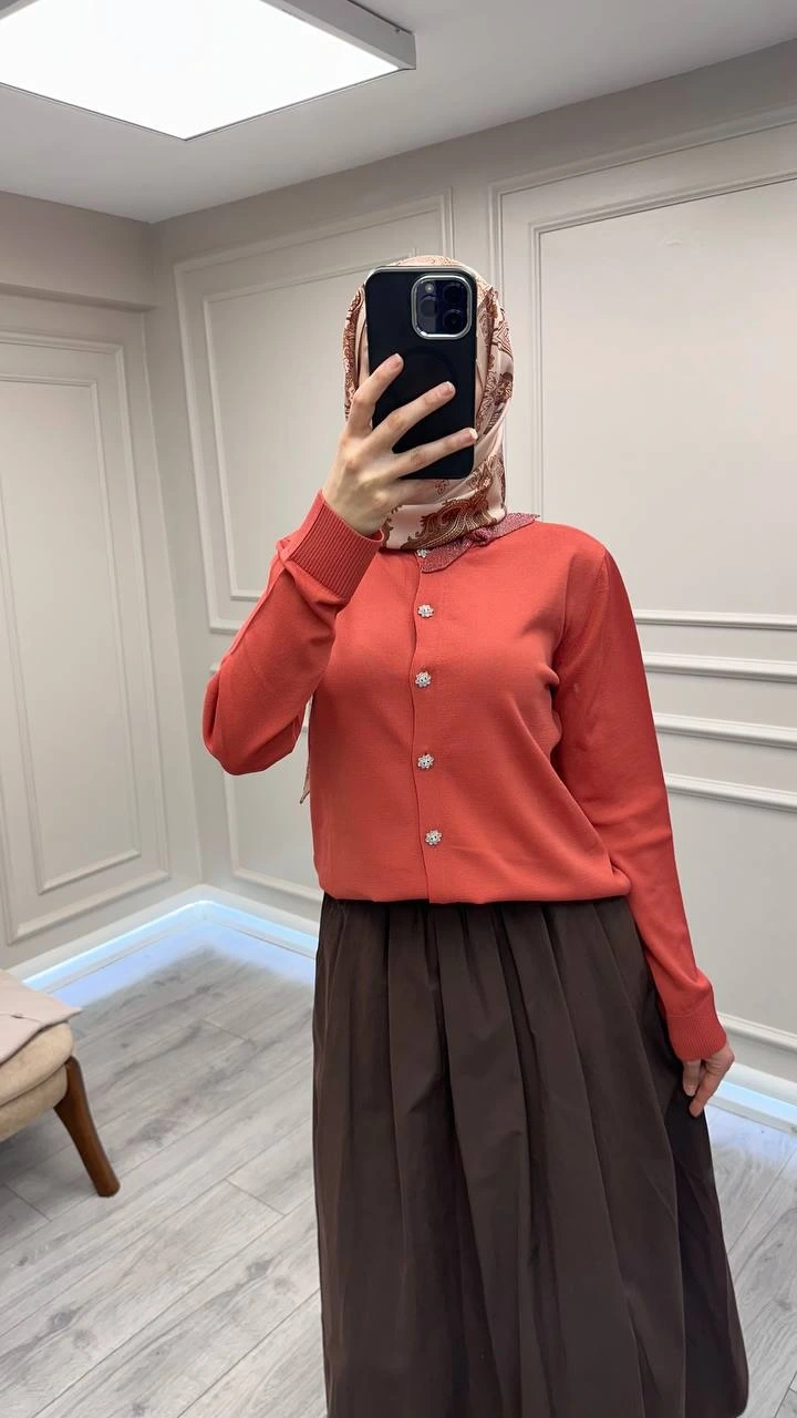 Ghisa Taba Yakası Taşlı Triko Hırka