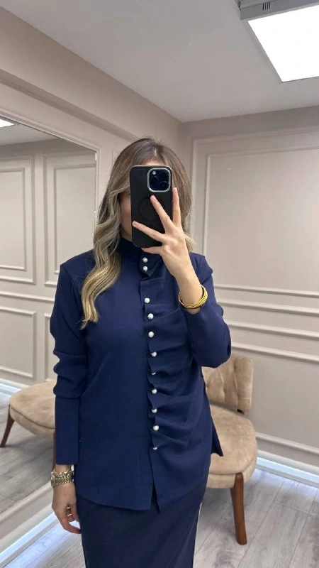 Ghisa 26KOBHRK3294 Lacivert Düğme Detaylı Hırka