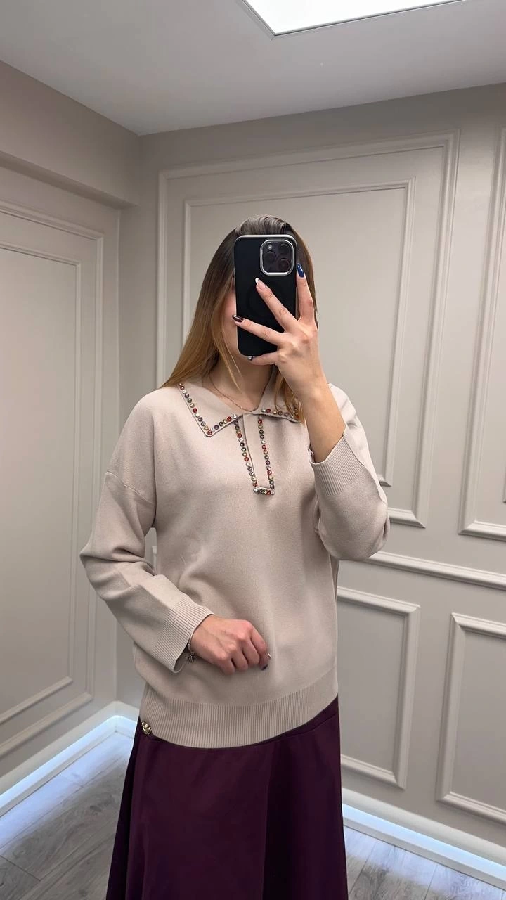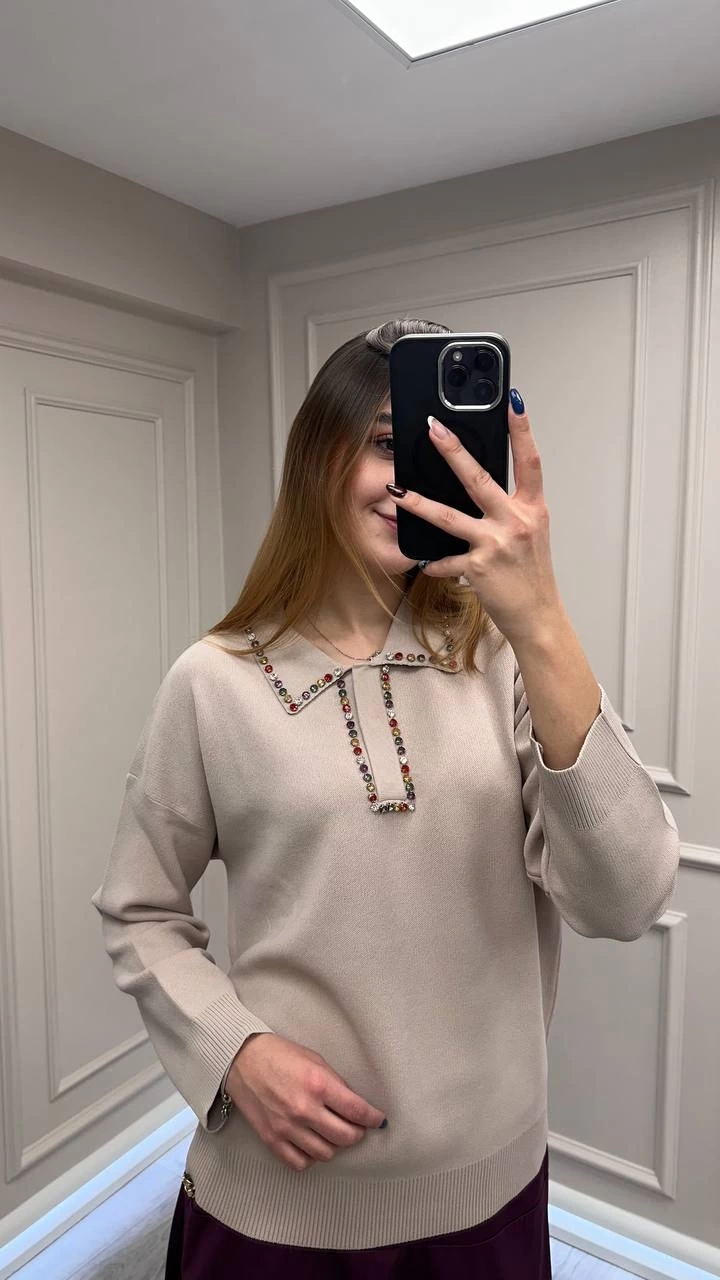Ghisa 26KOBTNK4144 Kum Yakası Taşlı Tunik