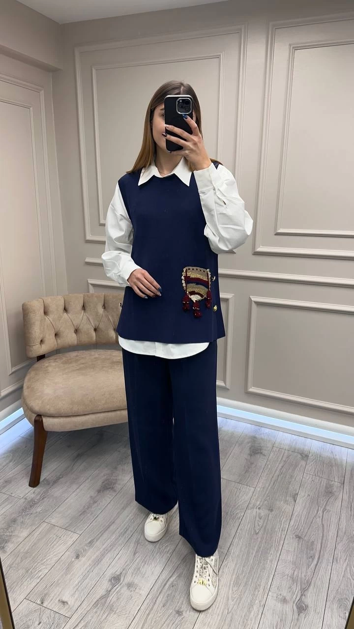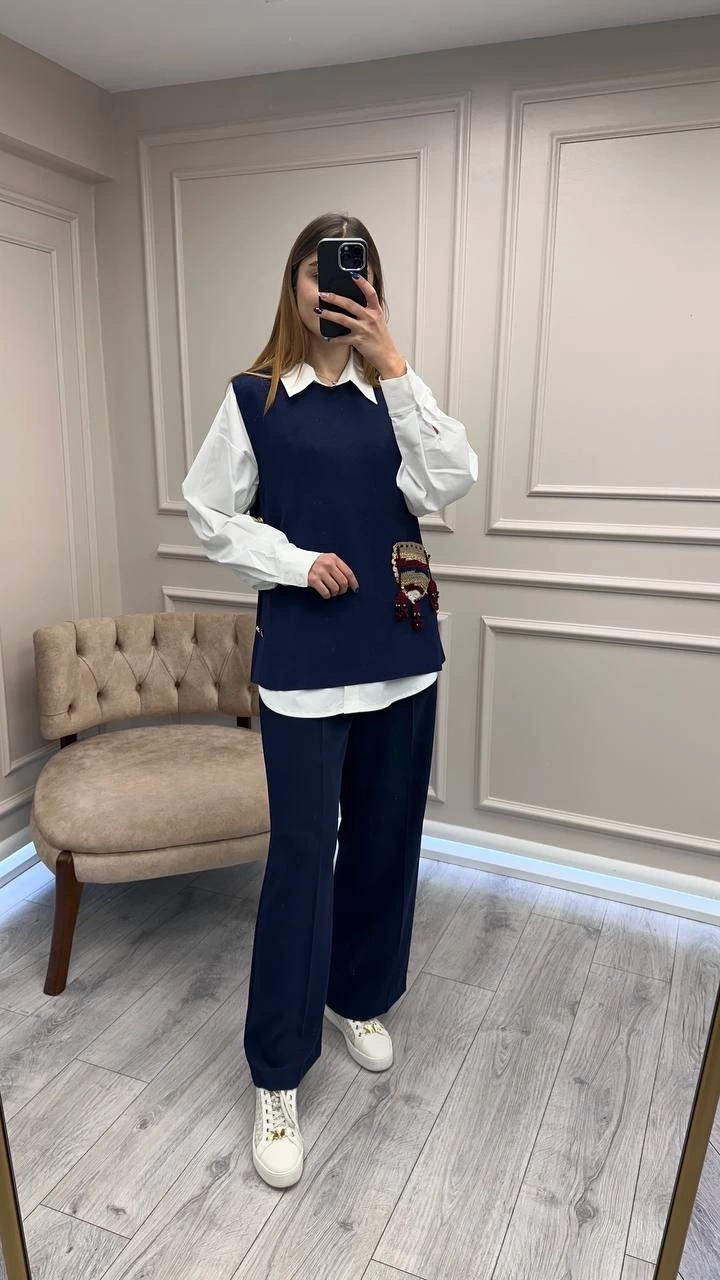 Ghisa 26KOBYLK3291 Lacivert Nakış Detaylı Yelek