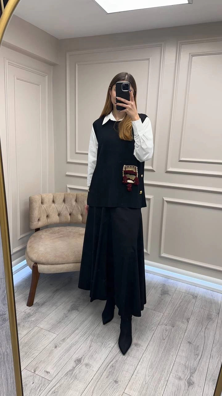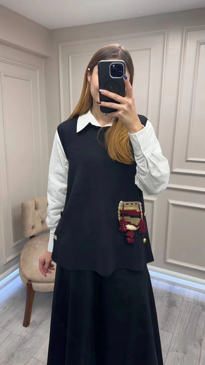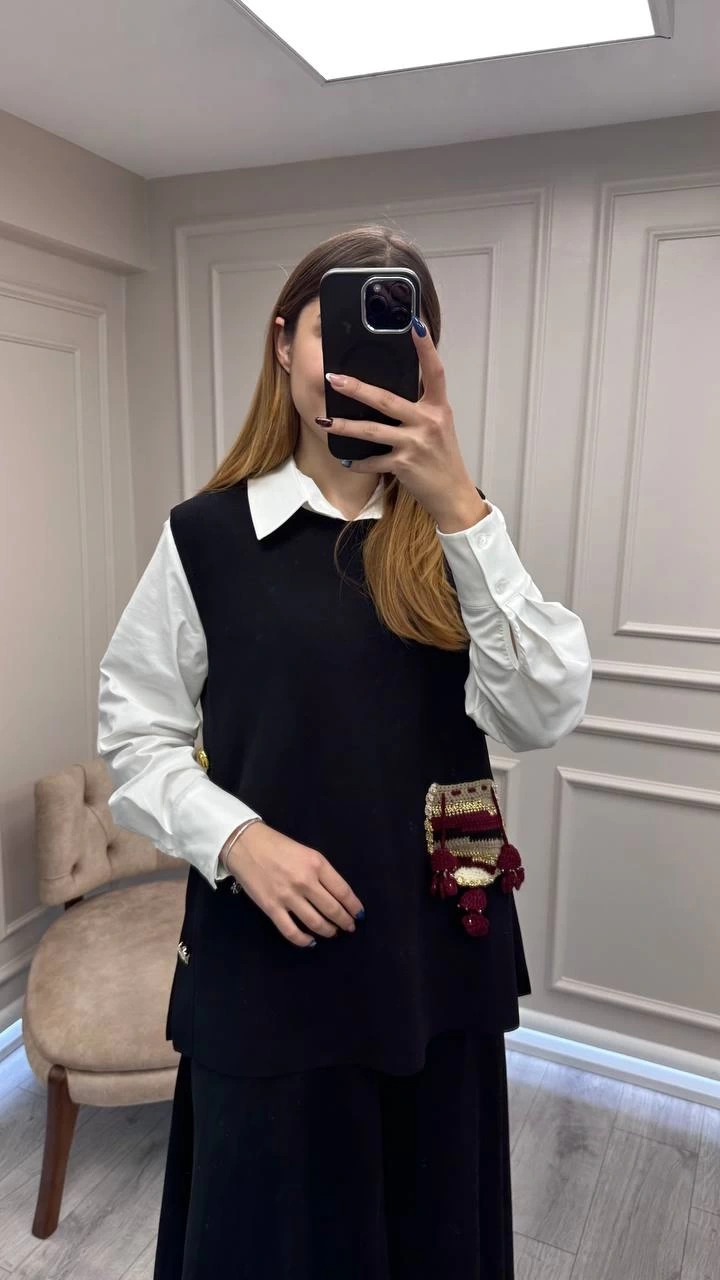 Ghisa 26KOBYLK3291 Siyah Nakış Detaylı Yelek