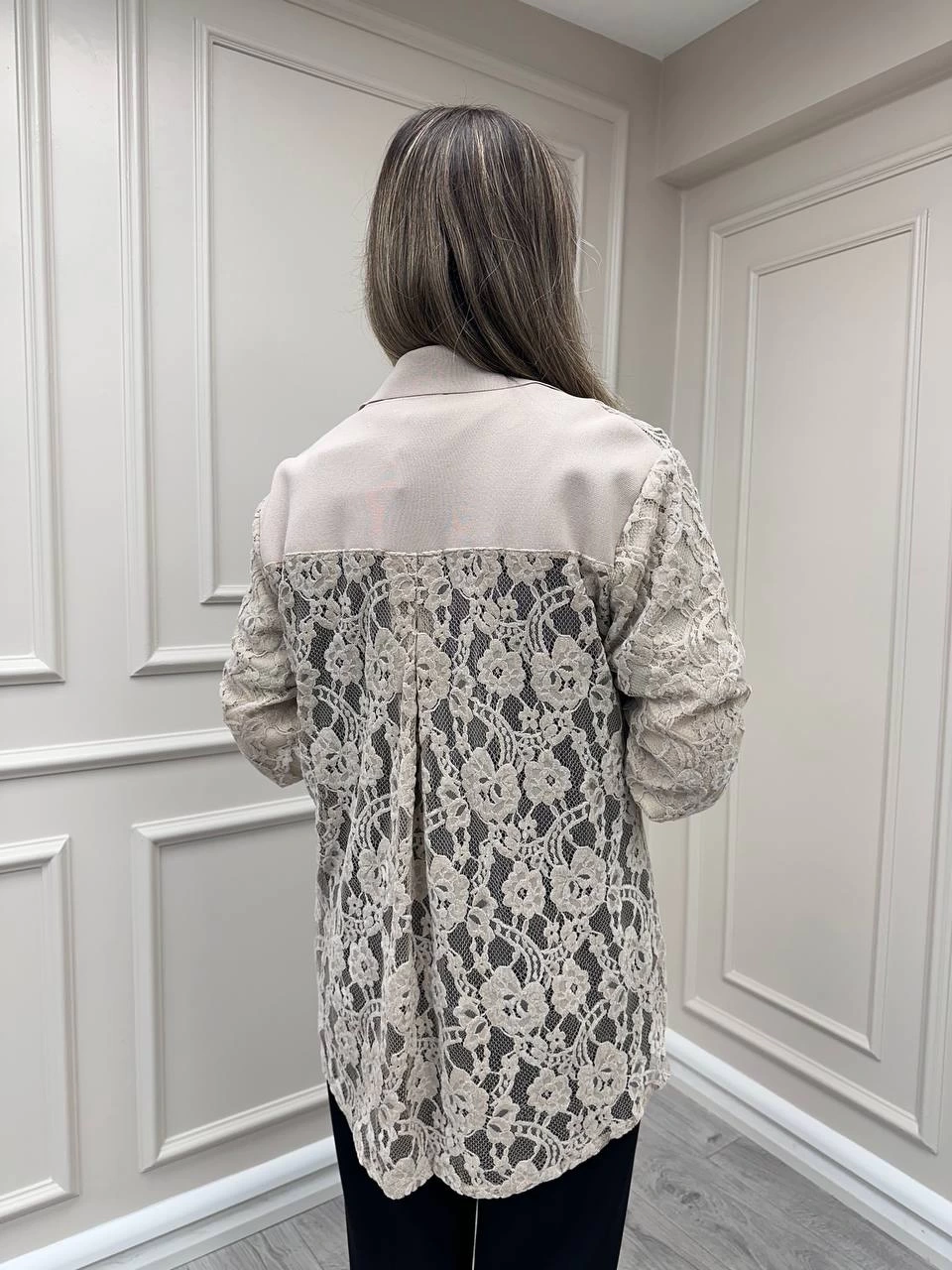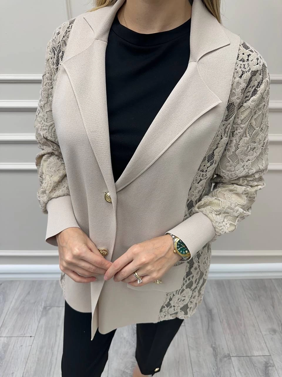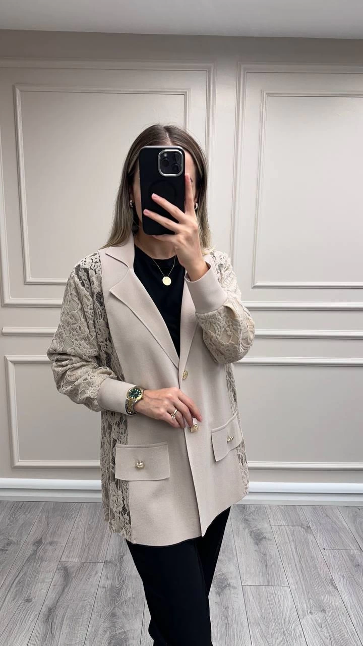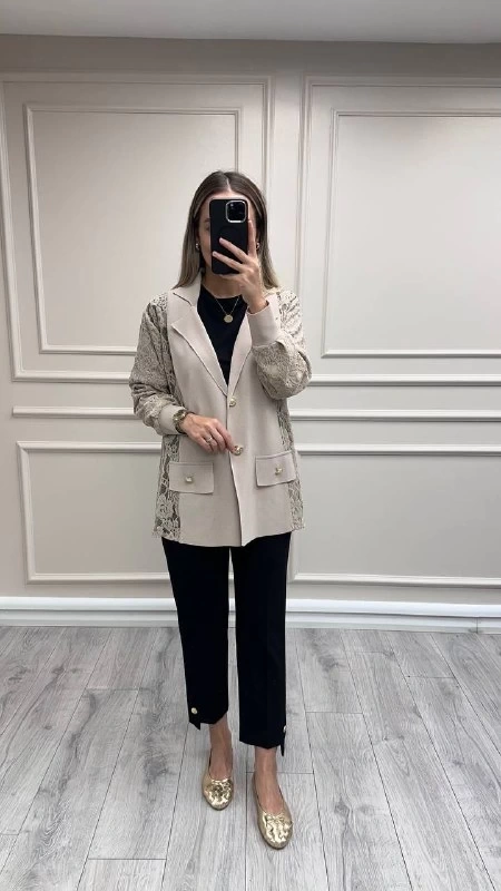 Ghisa Camel Kolları Tül Detaylı Ceket
