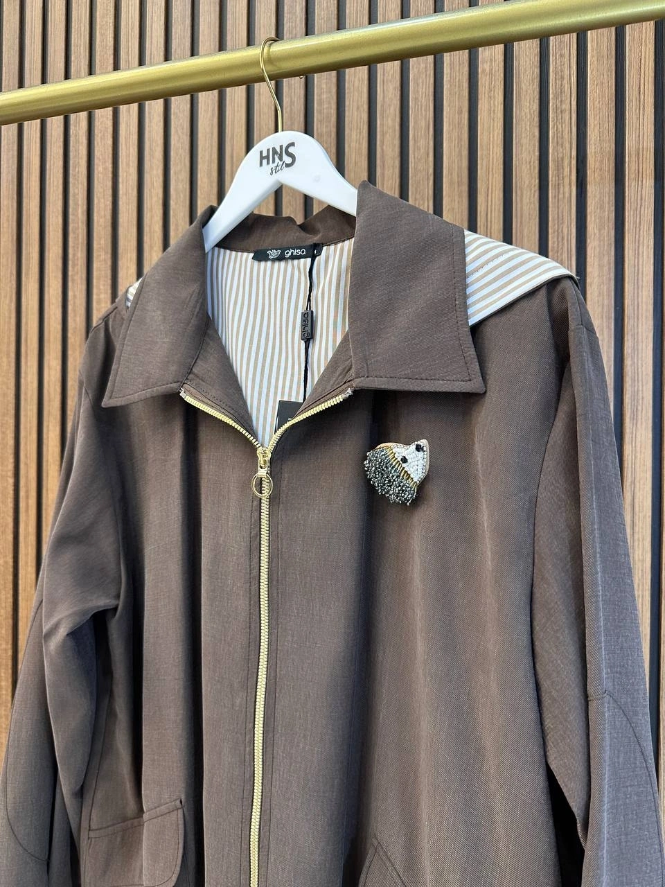 Ghisa 3610C3299 Kahve Broş Detaylı Ceket
