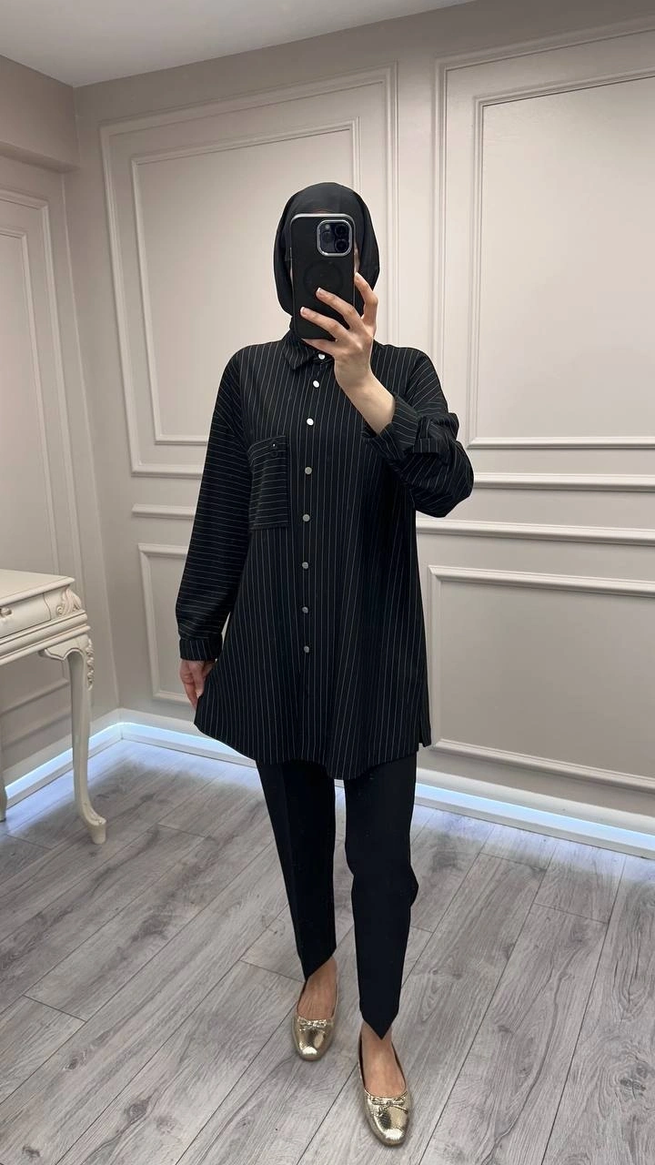 Ghisa Siyah Çizgi ve Cep Detaylı Tunik