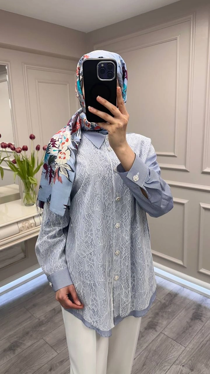 Ghisa 3610T4316 Lacivert Önü Dantel Detaylı Tunik